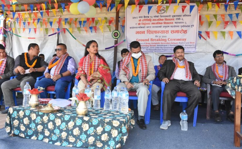 श्री हरिसिद्घि माध्यमिक विद्यालय र महाभारत गाउँपालिकास्थित श्री सिद्घेश्वर माध्यमिक विद्यालयको पुनर्निर्माणका लागि भूमि पूजा सम्पन्न गरिएको भारतीय राजदूतावासबाट जारी विज्ञप्तिमा उल्लेख छ ।