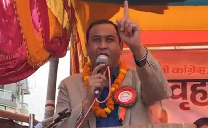 ‘कांग्रेसले विद्यार्थीलाई बम पड्काएर मारेन, खानेपानीको पाइप काटेनौँ, लुटेनौँ’, उनले भने, ‘जनतालाई ढाट्ने पार्टीबाट मुक्ति दिलाउने पार्टी कांग्रेस हो ।’