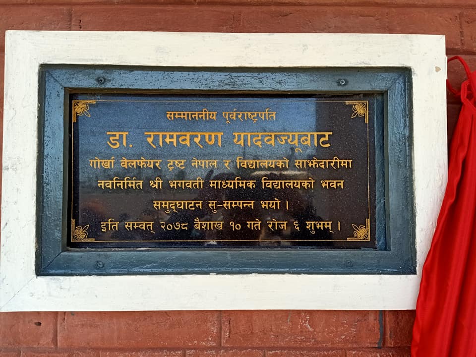 यसैबीच, पूर्वराष्ट्रपति डा.यादवले गोरखा वेलफेयर ट्रस्टको १६ कोठाको पक्की भवनको उद्घाटन पनि गरेका थिए । भवनका बाँकी चार वटा कोठा बन्दै गरेको छ ।