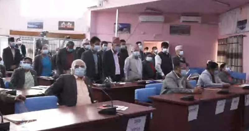 प्रदेश सभाको विशेष अधिवेशनको सुरूआतमै सत्तारूढ एमालेका सांसदहरूले बैठकमा उठेर संसद अवरूद्ध पारेका हुन् ।