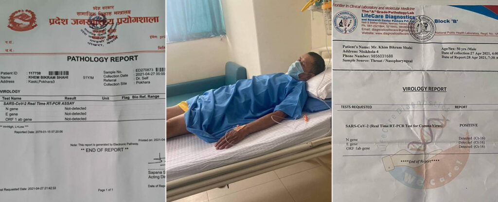 जनमोर्चाका सांसद शाहीले भने एकै दिन कोरोना परीक्षण गर्न दिएको स्वाबको रिपोर्ट छुट्टाछुट्टै प्रयोगशालाबाट फरक–फरक आएको थियो ।