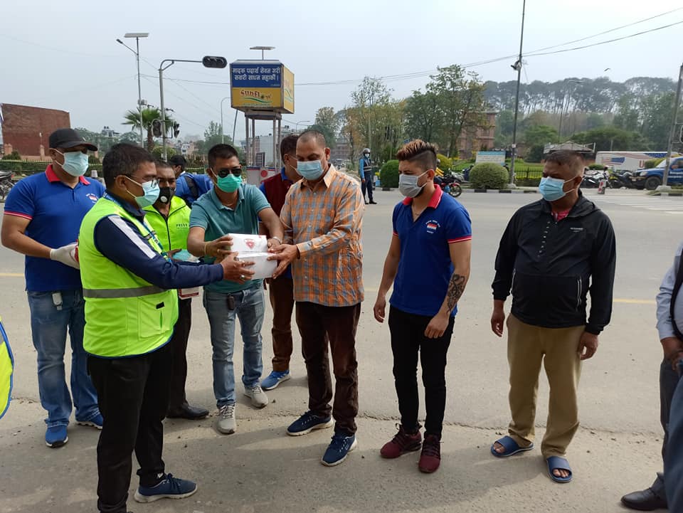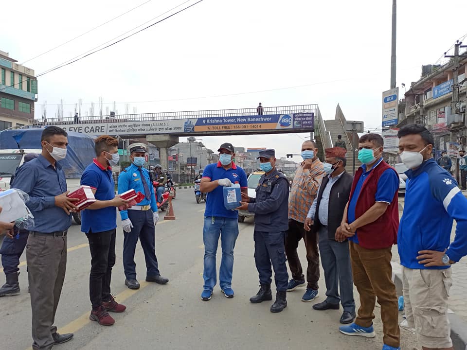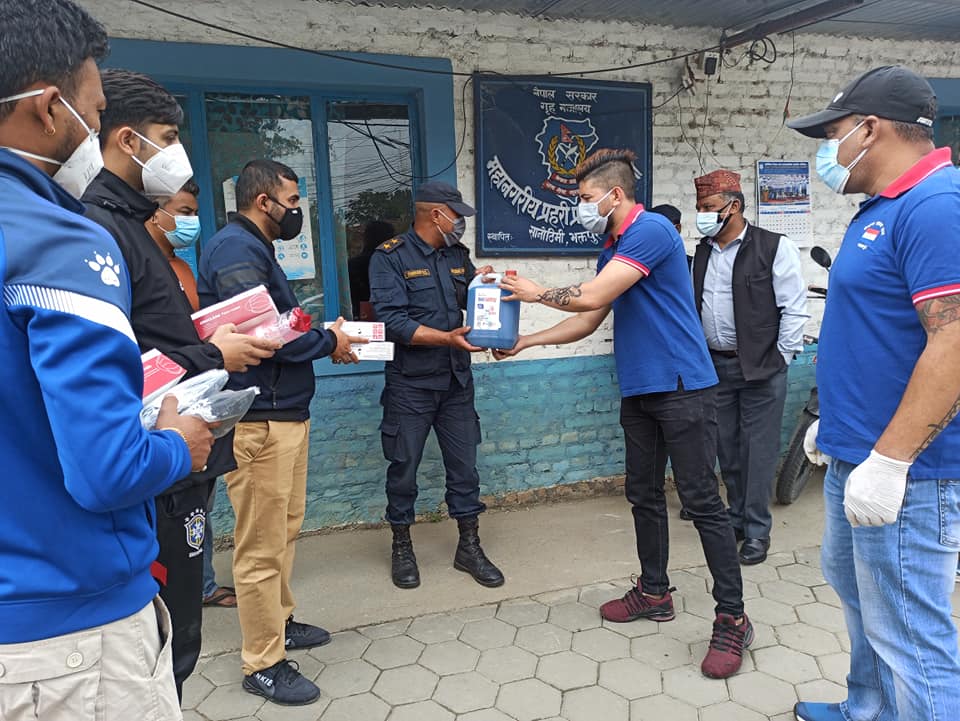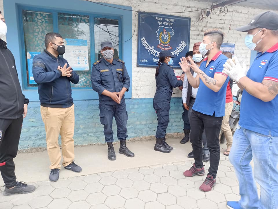भक्तपुरमा तरुण दलद्वारा सुरक्षाकर्मीहरूलाई स्वास्थ्य सामग्री वितरण, जनचेतना पनि चलायो