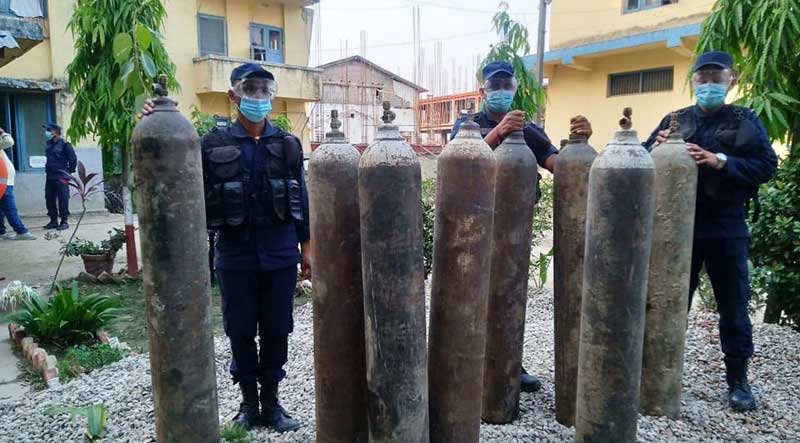 नयाँ भेरियन्टको कोरोनाभाइरसका कारण सर्वसाधारणले उपचारमा अक्सिनज अभाव भएर समस्या भोगिरहेका बेला २ नं. प्रदेश प्रहरीले लुकाएर राखिएका अक्सिजन सिलिण्डरहरू नियन्त्रणमा लिएर सम्बन्धित निकायमा बुझाएको हो ।