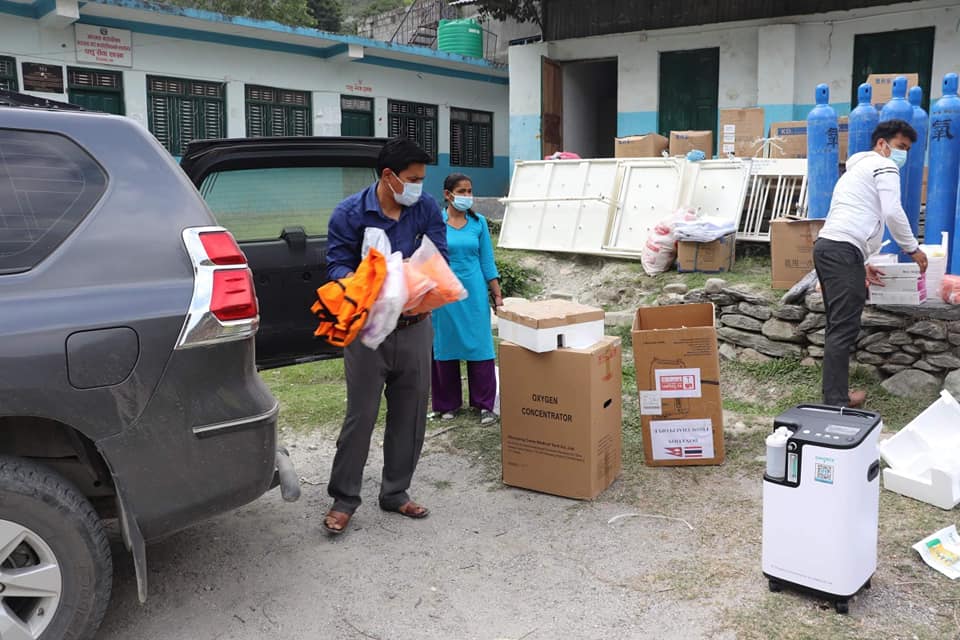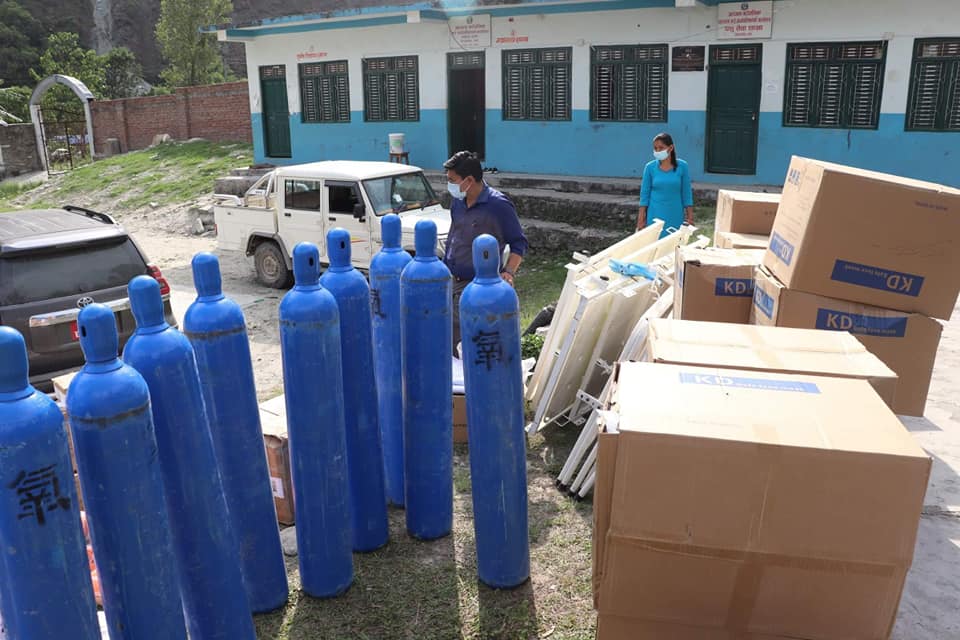 अक्सिजन सिलिण्डर, अक्सिजन कनसन्ट्रेटर, बेड सिट, पीपीई, मास्क, सेनीटाइजर, भीटीएम, एन्टीजेन किटलगायत गरी २० लाख बराबरको स्वास्थ्य सामग्री गाउँपालिकामा भित्रिएका छन् ।