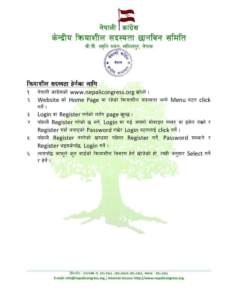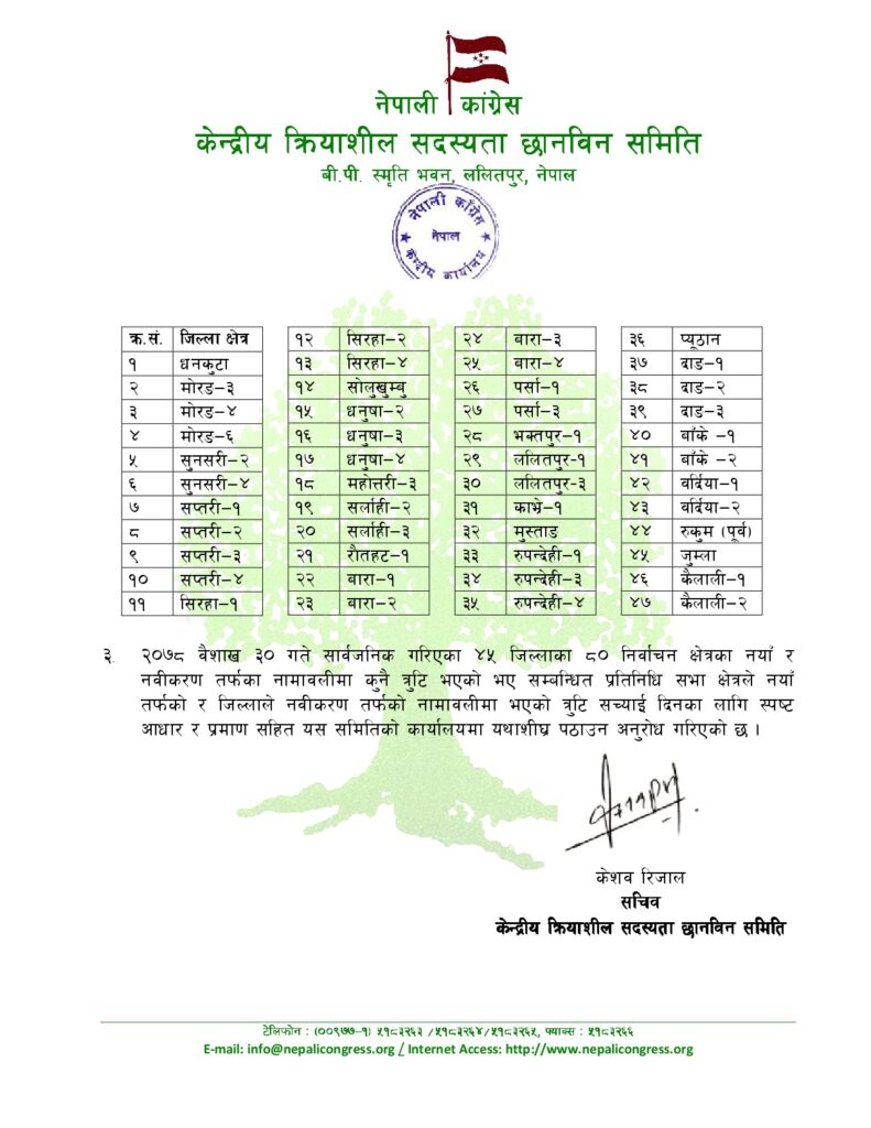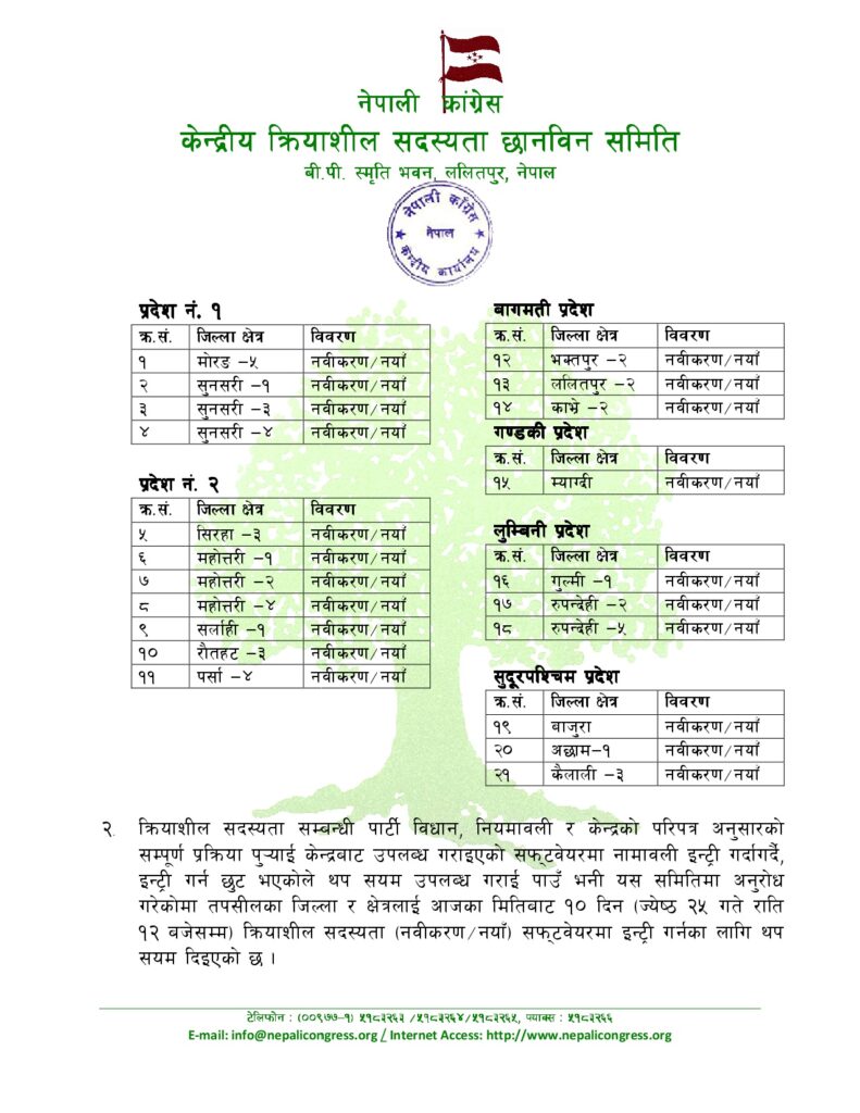 कांग्रेसद्वारा २१ स्थानका नयाँ र नवीकरण गरिएका क्रियाशील सदस्यको नाम सार्वजनिक, नाम हेर्न मिल्ने