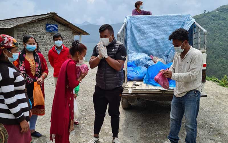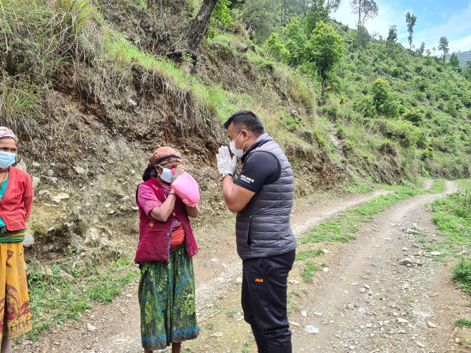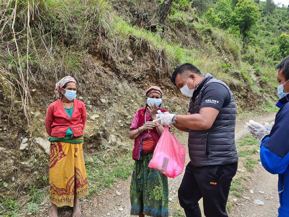 नेपाली कांग्रेसका युवा नेता समेत रहेका मगरले सोमबार गादीखोला, पुरानोगाउँ, कुदुम, भण्डारी गाउँ, मातेगाउँ, लखनढारा, पानीपोखरा र दाङ्चुङ्गका करीव ३०० घरमा स्वास्थ्य सामग्री वितरण गरेका हुन् ।