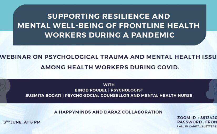 महामारीको बेलामा पनि अग्रमोर्चामा खटेर सेवा प्रदान गरिरहेका स्वास्थ्यकर्मीहरुले तनाव, विषाद लगायत अन्य मानसिक स्वास्थ्य सम्बन्धी समस्याहरु व्यहोरी रहेको विभिन्न अध्ययनहरुले देखाएका छन्। त्यसैले उहांहरुका व्यावहारिक समस्याबारे जानकारी प्राप्त गरी विज्ञहरुद्वारा परामर्श दिने उदेश्यले उक्त वेबिनार आयोजना गर्न लागिएको ह्याप्पी माइन्ड्स संस्थाकी प्रमुख कार्यकारी श्रीया गिरीले बताइन् ।