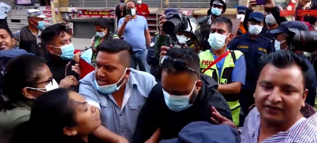 काठमाडौं । खड्गप्रसाद ओली नेतृत्वको कामचलाउ कम्युनिस्ट सरकारका उप–प्रधान एवम् शहरी विकासमन्त्री राजेन्द्र महतोको अभिव्यक्तिको विरोधमा युवा विद्यार्थीले विरोध प्रदर्शन गरेका छन् ।