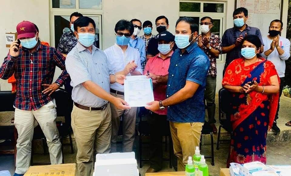 कांग्रेस नेता महर्जनले सेनिटाईजर, ग्लोब्स, मास्क, पीपीसेट गरि ५० हजारभन्दा बढिको स्वास्थ्य सामग्री छुट्टै हस्तान्तरण गरेका थिए ।