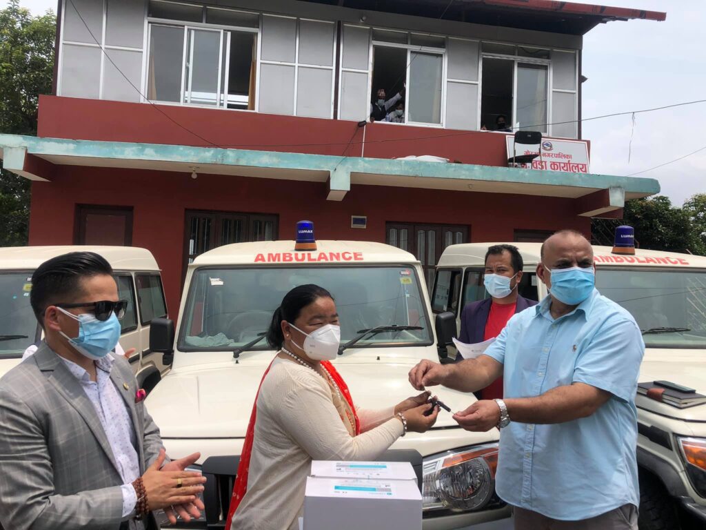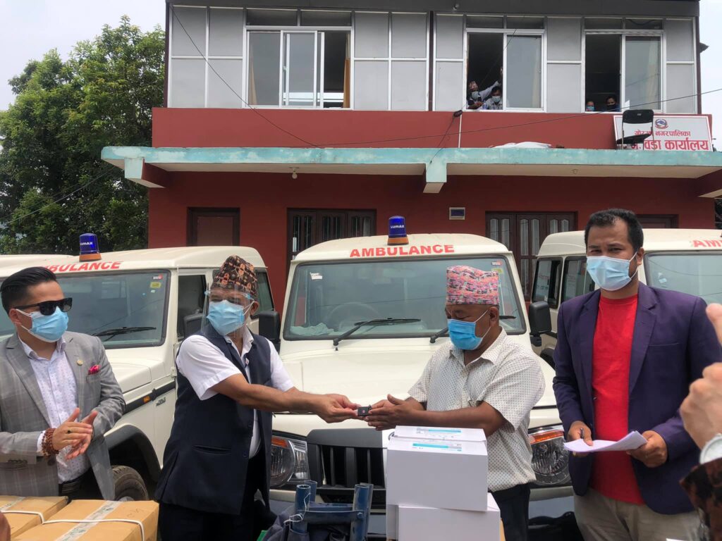 कांग्रेसका युवा नेता एवम् पर्यटन व्यवसायी प्रेमकुमार खत्रीले एम्बुलेन्स र स्वास्थ्य सामग्रीहरू दिएका हुन् ।