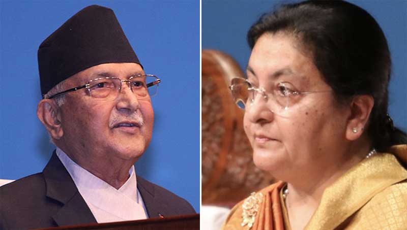 काठमाडौं । कामचलाउ सरकारका कम्युनिस्ट प्रधानमन्त्री खड्गप्रसाद ओली र राष्ट्रपति विद्यादेवी भण्डारीबीच भेटवार्ता भएको छ ।