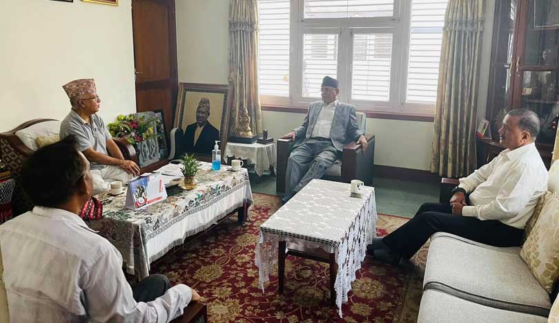 काठमाडौंको कोटेश्वरस्थित एमालेका वरिष्ठ नेता माधवकुमार नेपालको निवासमा बिहीबार बिहान नेता नेपालका साथै माओवादी केन्द्रका अध्यक्ष पुष्पकमल दाहाल ‘प्रचण्ड’ र नेपाल कम्युनिस्ट पार्टीका महासचिव नेत्रविक्रम चन्द ‘विप्लव’बीच भेटवार्ता भएको हो ।