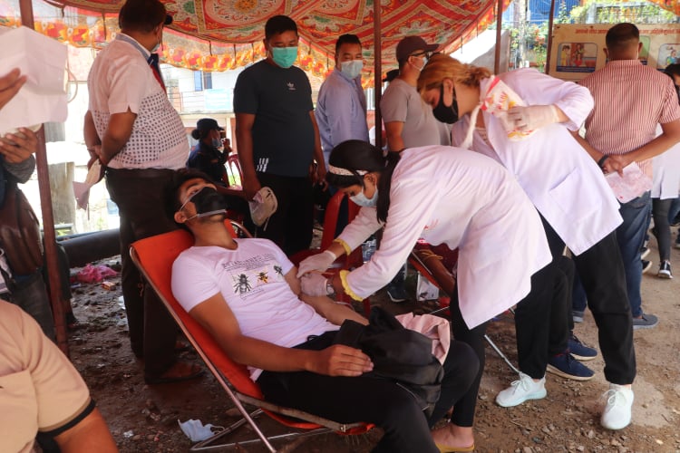 देउवाको मिशन सफल पार्न बस्नेतले चौताराबाट शुरु गरे अभियान, खेलाडीहरूद्वारा रक्तदान
