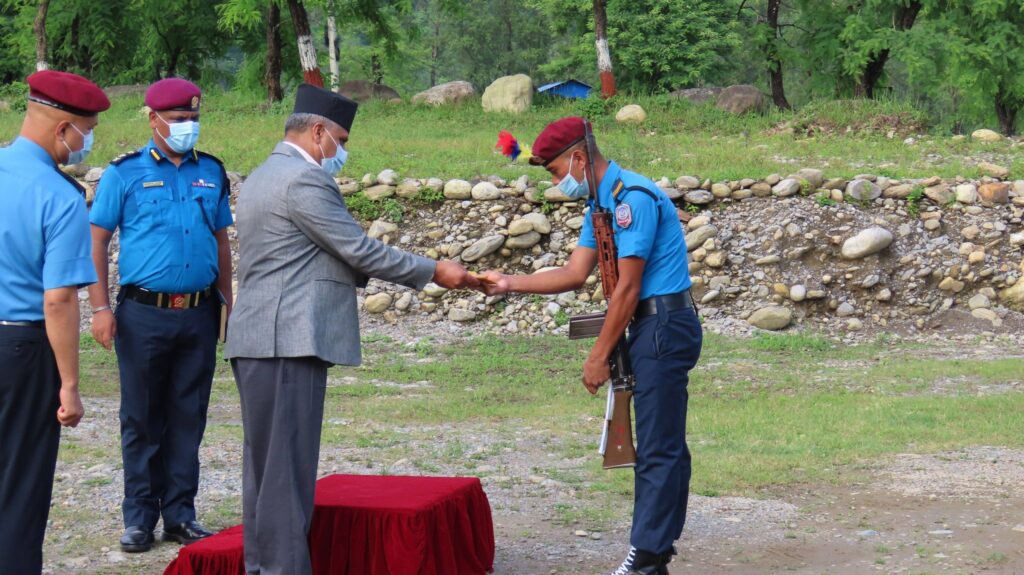 अर्थमन्त्री बराल र डीआईजीद्वारा दंगा नियन्त्रण प्रहरी गण तनहुँको भ्रमण, सहयोग गर्ने आश्वासन