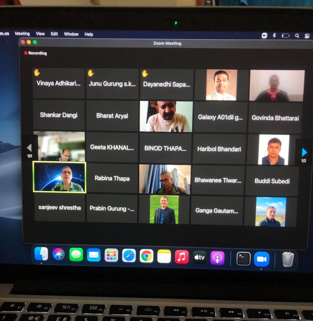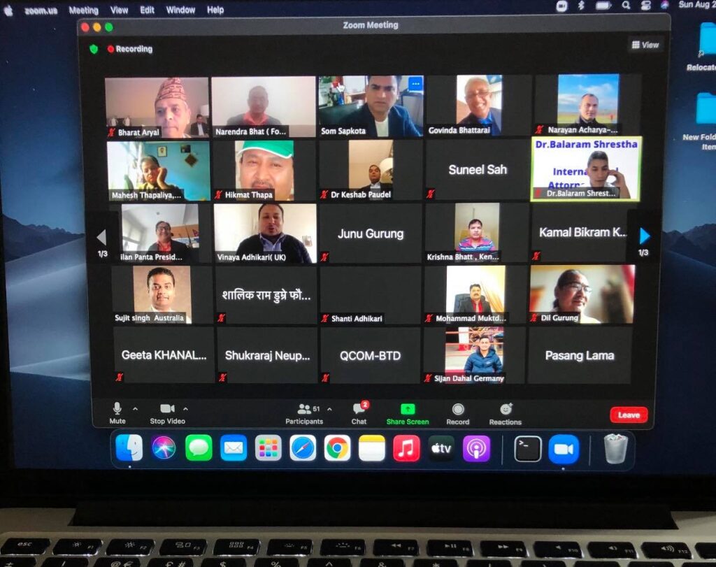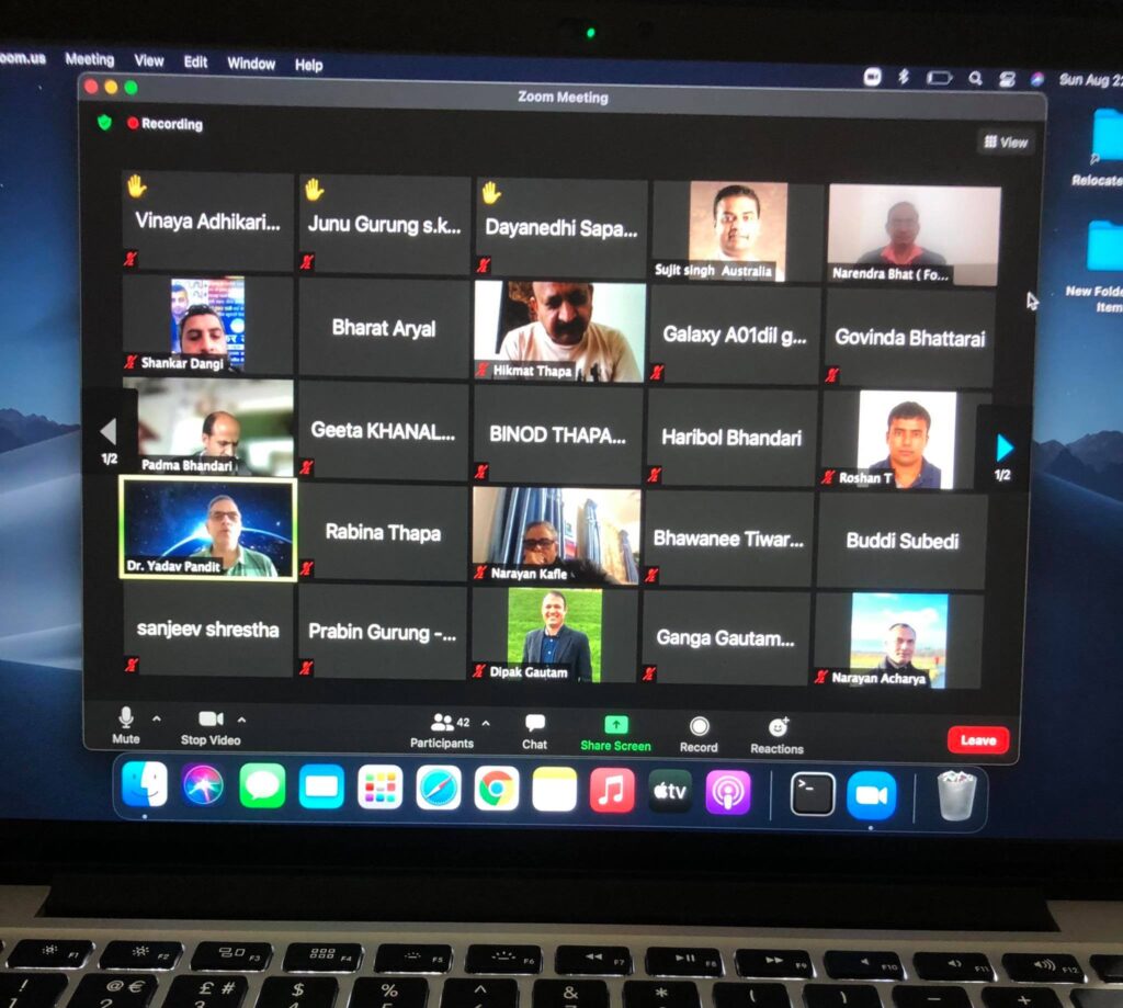 कार्यक्रममा एनआरएनएका महेश थपलियाले स्वागत भाषण गरेका थिए । जुम मिटिङमा जितेकालाई बधाइ दिइएको थियो ।