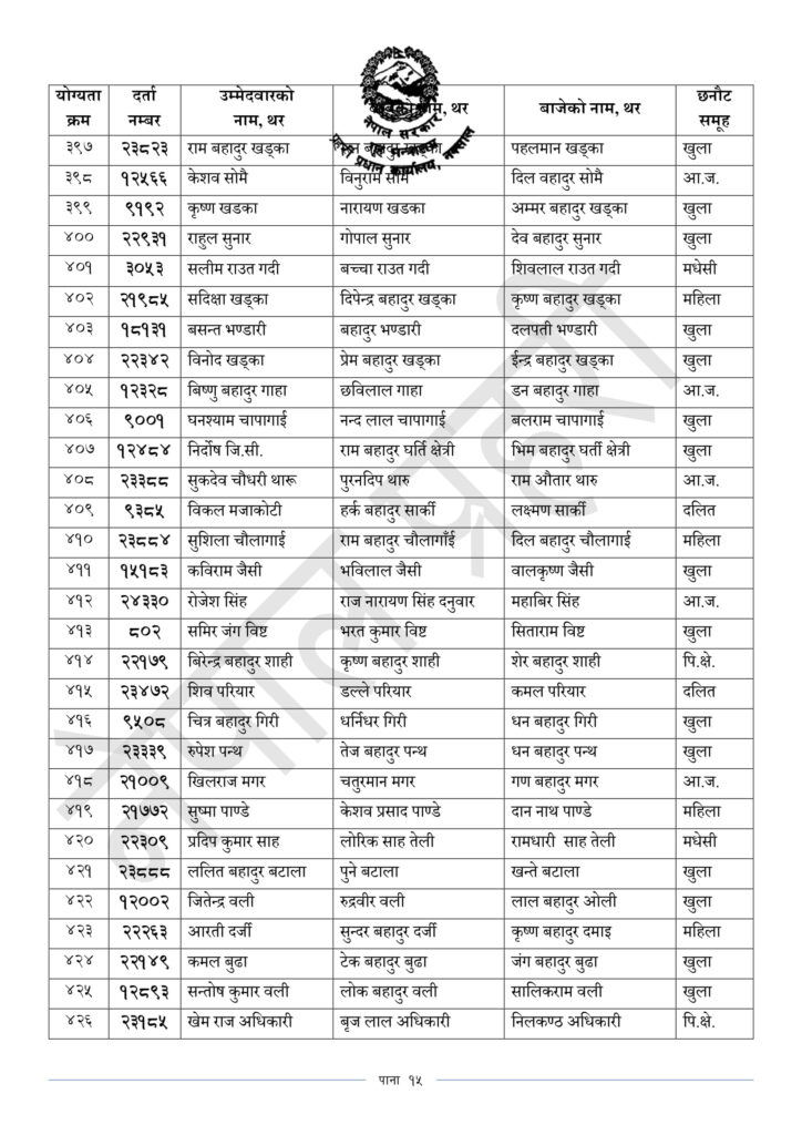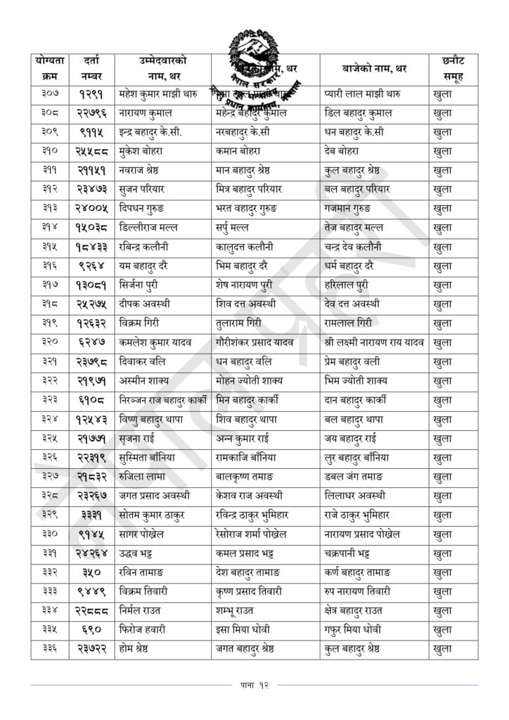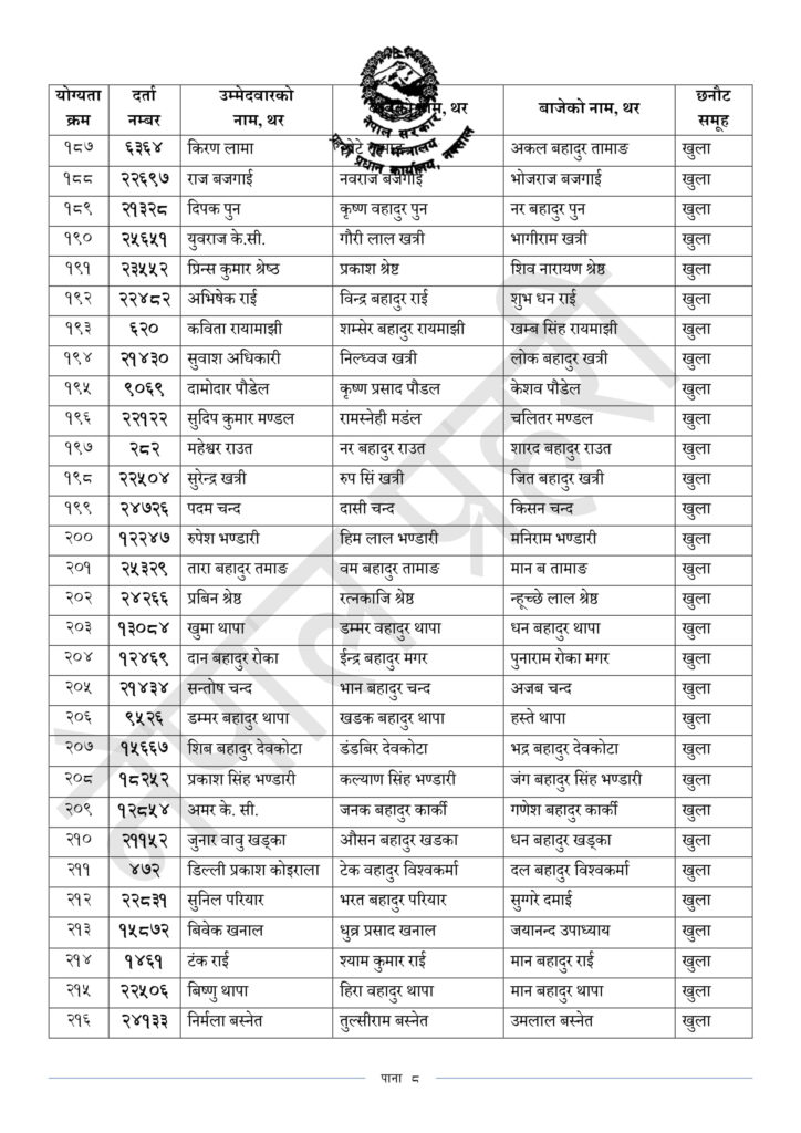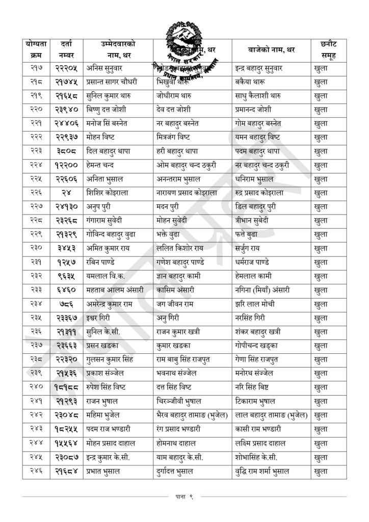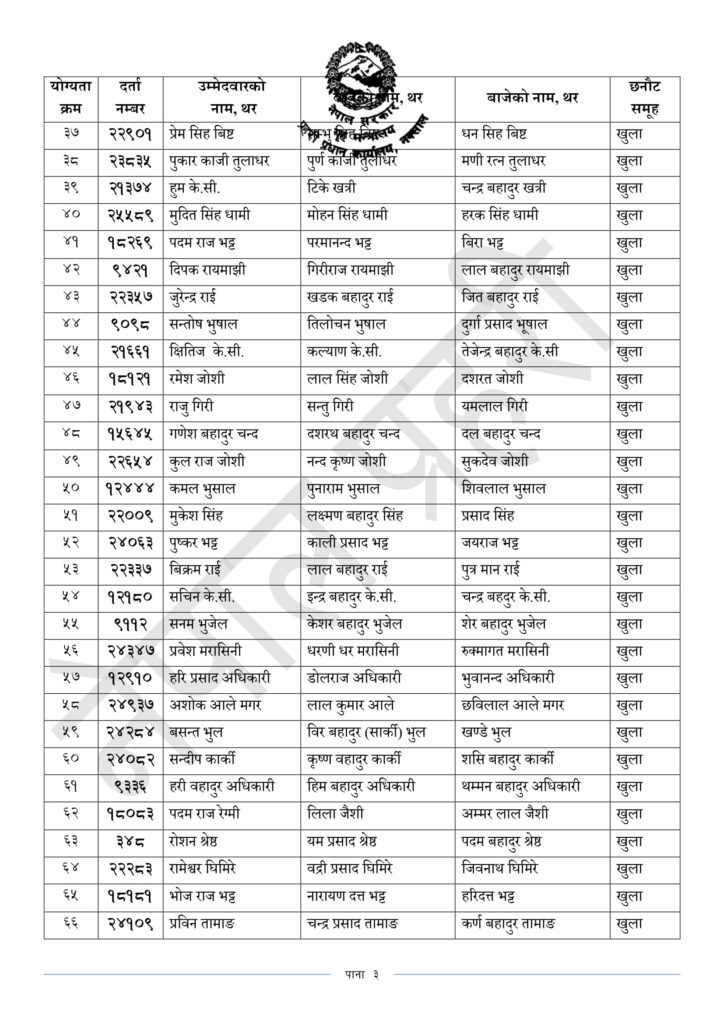 नेपाल प्रहरीका रिक्त रहेको प्रहरी सहायक निरीक्षक (जनपद) पदमा खुला प्रतियोगिताद्वारा समावेशी प्रावधान बमोजिम पदपूर्ति गर्न प्रहरी प्रधान कार्यालयबाट २०७६ माघ १ गते प्रकाशित विज्ञापन अनुसार अन्तर्वार्तामा उत्तीर्ण भएका उम्मेदवारहरूको अन्तिम नतिजा प्रकाशन गरेको सूचनामा उल्लेख छ ।