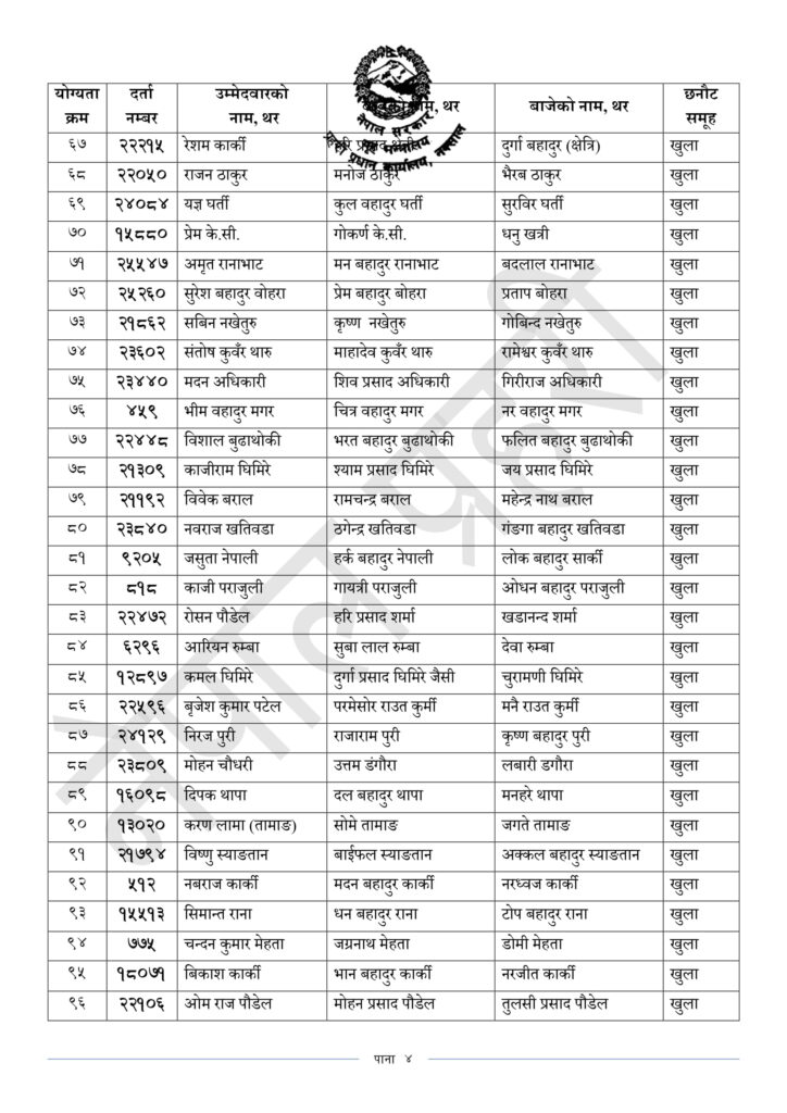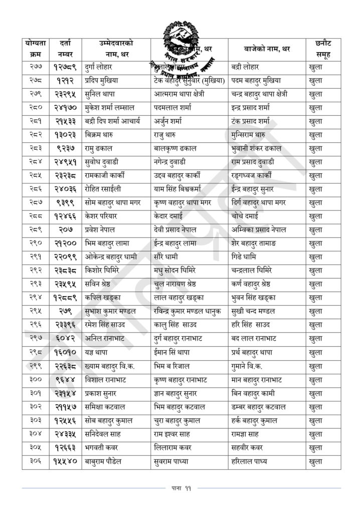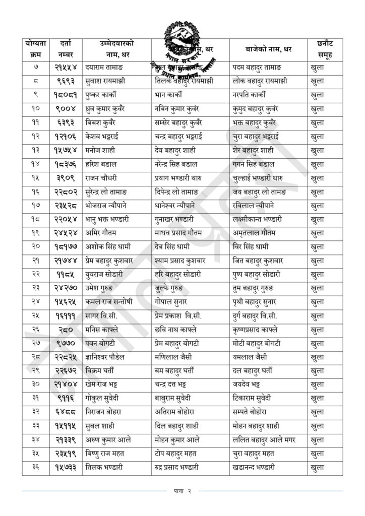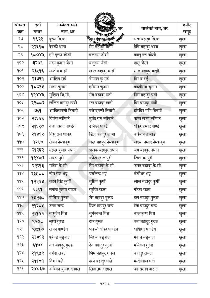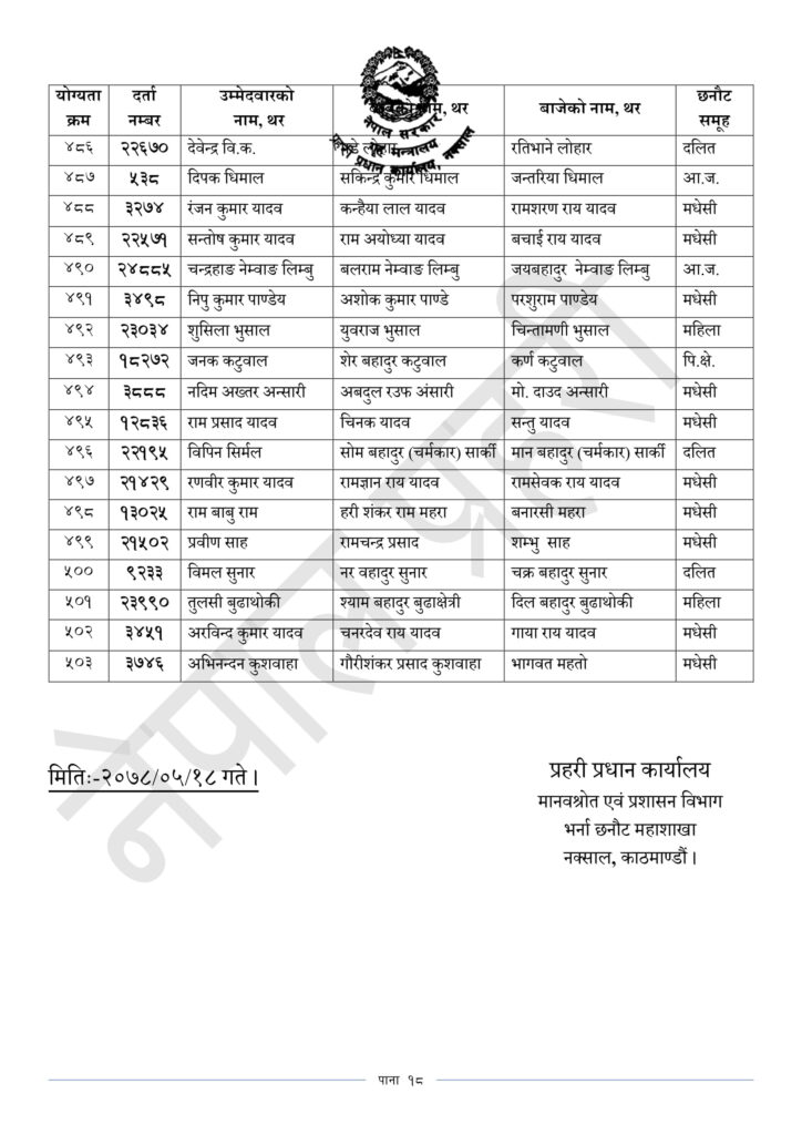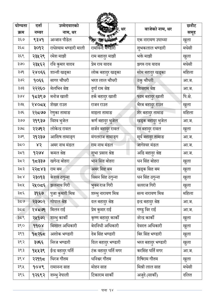नेपाल प्रहरीका रिक्त रहेको प्रहरी सहायक निरीक्षक (जनपद) पदमा खुला प्रतियोगिताद्वारा समावेशी प्रावधान बमोजिम पदपूर्ति गर्न प्रहरी प्रधान कार्यालयबाट २०७६ माघ १ गते प्रकाशित विज्ञापन अनुसार अन्तर्वार्तामा उत्तीर्ण भएका उम्मेदवारहरूको अन्तिम नतिजा प्रकाशन गरेको सूचनामा उल्लेख छ ।