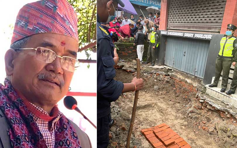 ललितपुर महानगरपालिकाका नगर प्रहरी प्रमुख सीताराम हाछेथुले सडक पेटी भत्काउन लगाएका थिए । ललितपुर जिल्ला अदालतको आदेश भन्दै सडक पेटीमा डोजर चलाउने क्रममा केहीबेर बिरोध भएको थियो ।