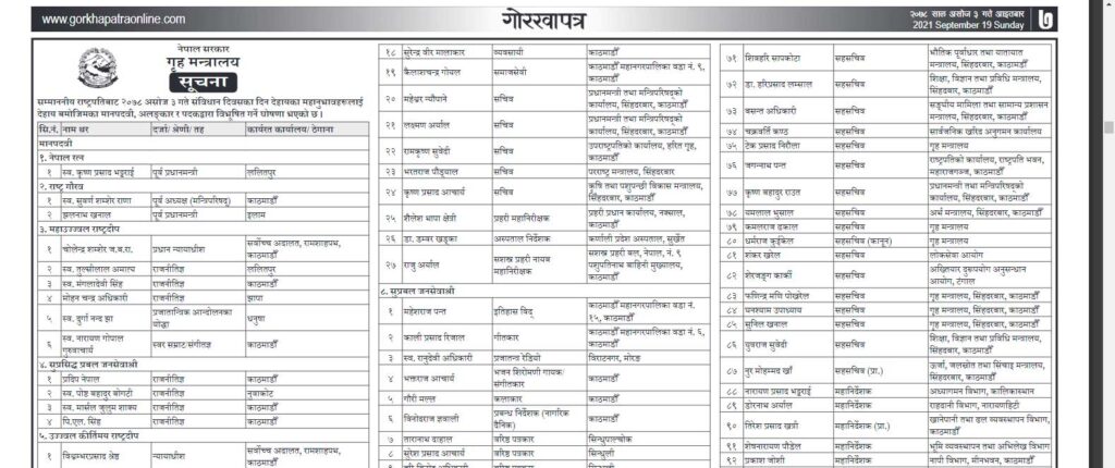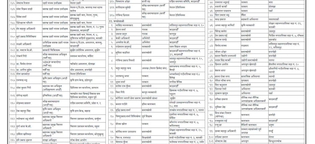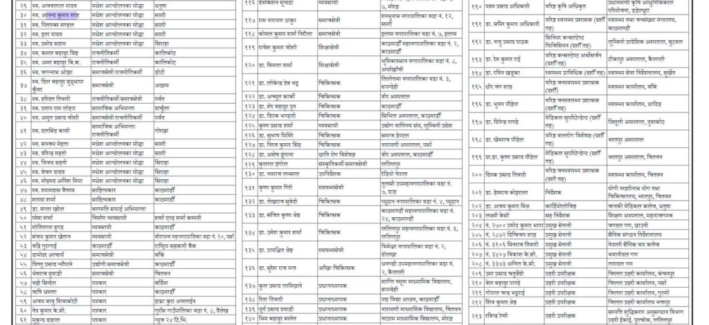 किशुनजीलाई नेपाल रत्न विभूषण, ९०३ जनाले पाए अलंकार र पदवीहरू (नामसहित)