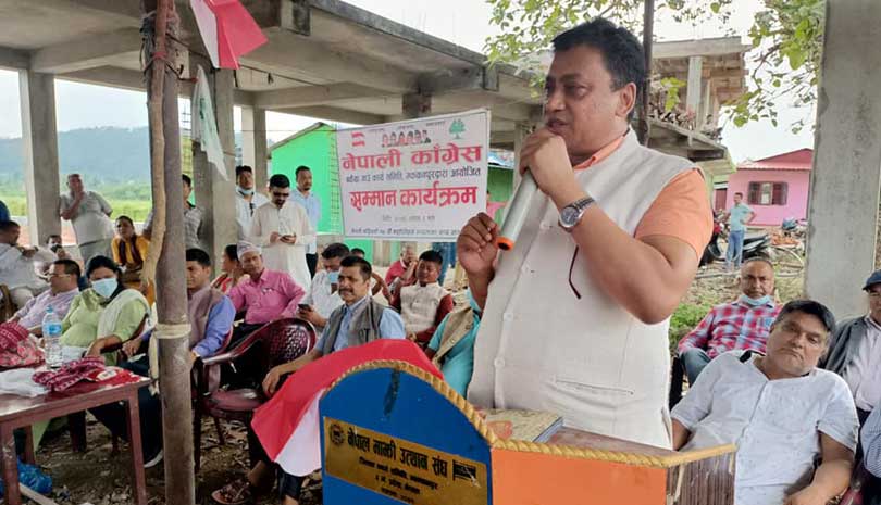उनले भने, ‘मुलुकमा लामो समयदेखि हिंसा भएको, द्वन्द्वको समाधान गर्दै शान्ति प्रक्रियाबाट पहिलो संविधान सभाबाट संविधान दिन नसकेका माओवादीको साथीहरूलाई समेत कांग्रेसको नेतृत्वमा दोस्रो संविधान सभाबाट संविधान दिएका छौं ।’