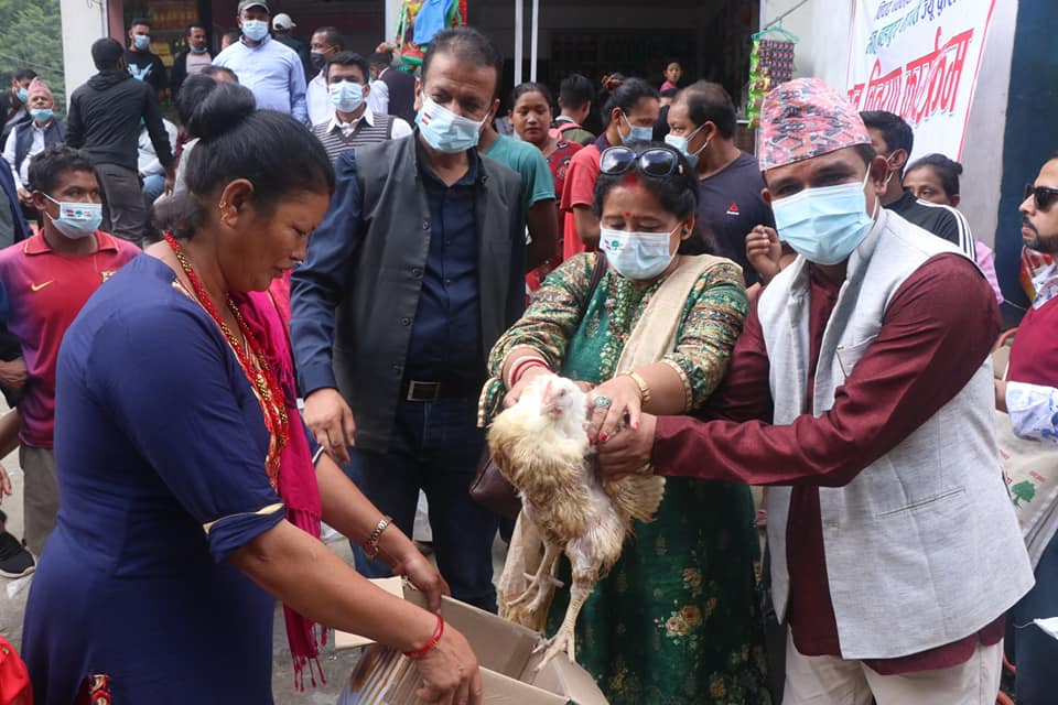 कांग्रेस नेता बस्नेतले ३० वटा घर बनाइदिने, १५० परिवारलाई कुखुरासहित खाद्यान्न वितरण