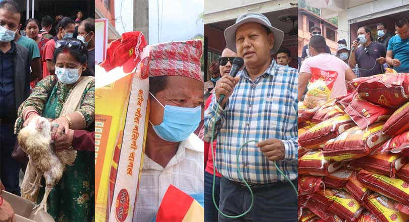 कांग्रेस नेता बस्नेतले ३० वटा घर बनाइदिने, १५० परिवारलाई कुखुरासहित खाद्यान्न वितरण