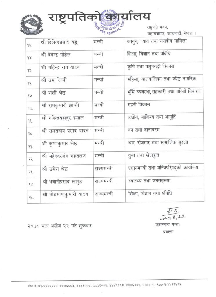 को–को बने मन्त्री ? खाण बने वरिष्ठ मन्त्री, श्रेष्ठ प्रधानमन्त्री कार्यालय पुगे