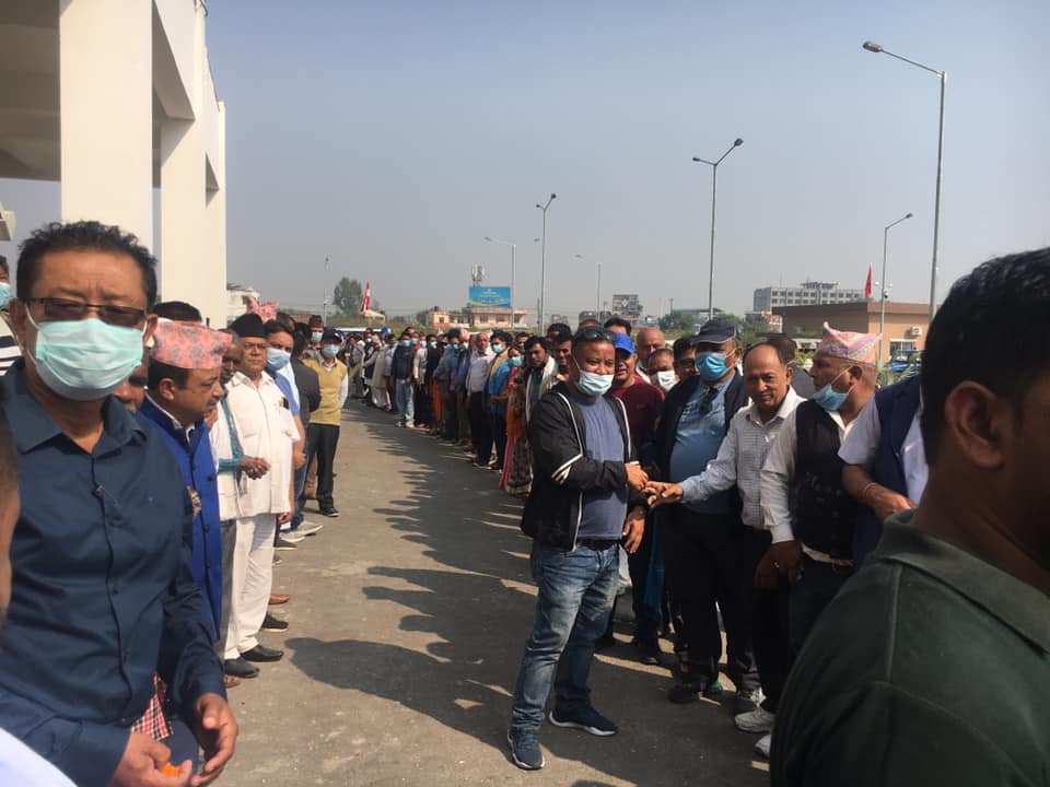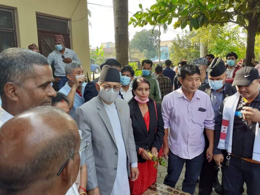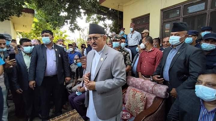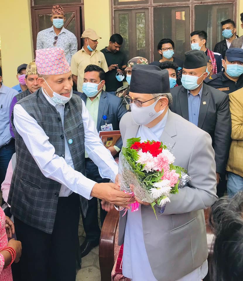 कार्यबाहक प्रधानमन्त्री खाणले आफ्नै जिल्लामा पाए कार्यकर्ताको माया, नेता कार्यकर्ताद्वारा भव्य स्वागत