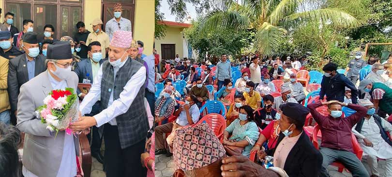 कार्यबाहक प्रधानमन्त्री खाणले आफ्नै जिल्लामा पाए कार्यकर्ताको माया, नेता कार्यकर्ताद्वारा भव्य स्वागत