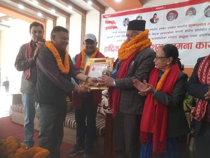 ओलीको घमण्ड तोडेर जितेका कांग्रेसका मन्त्रीलाई भक्तपुरमा सम्मान