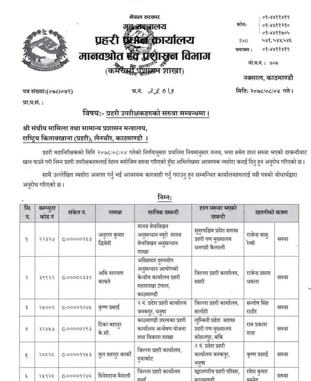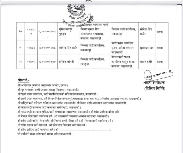 प्रहरीका २२ जना एसपीहरूको सरुवा