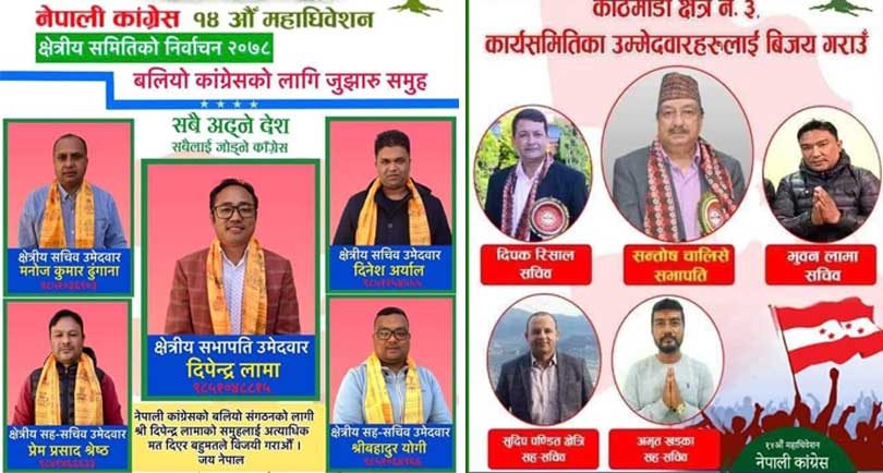 सभापति शेरबहादुर देउवा समूहबाट सभापतिका उम्मेदवार दीपेन लामा र नेता प्रकाशमान सिंहको तर्फबाट सन्तोष चालिसेले प्रतिस्पर्धा गरेका छन् ।