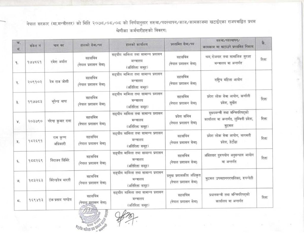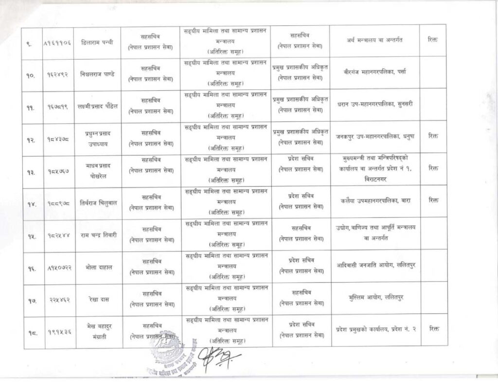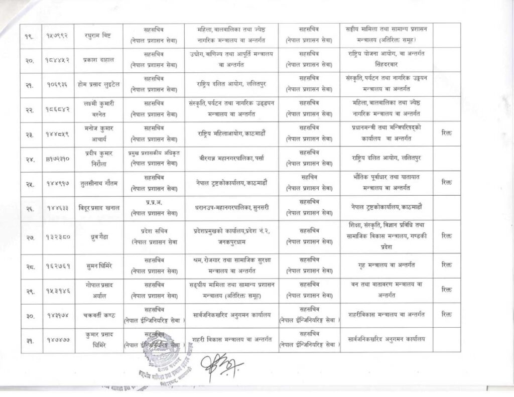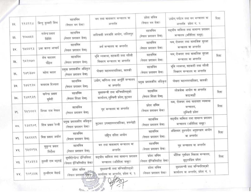 सरकारद्वारा यी ४४ सह–सचिवहरूको सरुवा