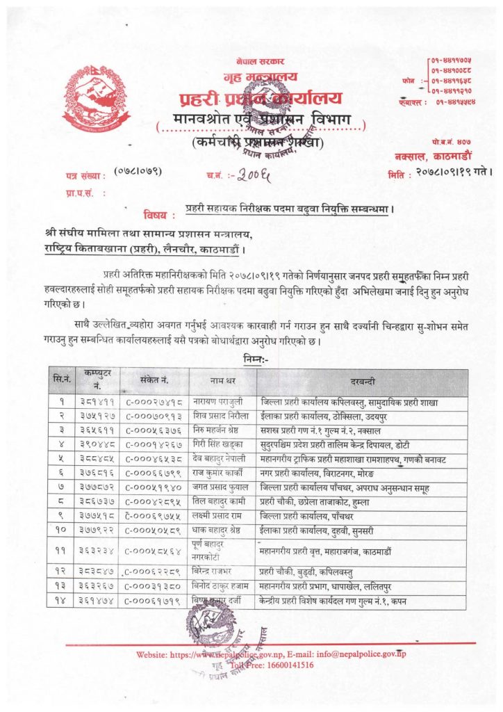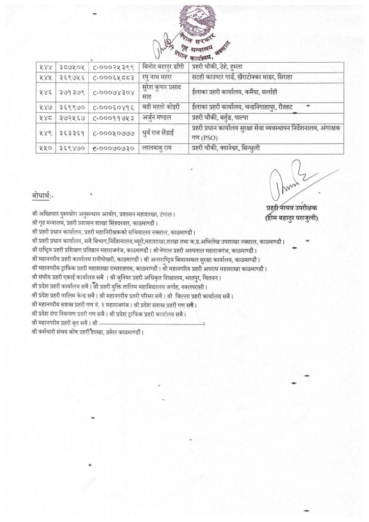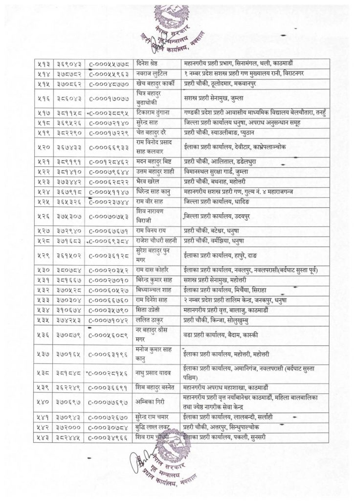 प्रहरीका ५५० जना हवल्दारको असईमा बढुवा, को–को बढुवा भए ?