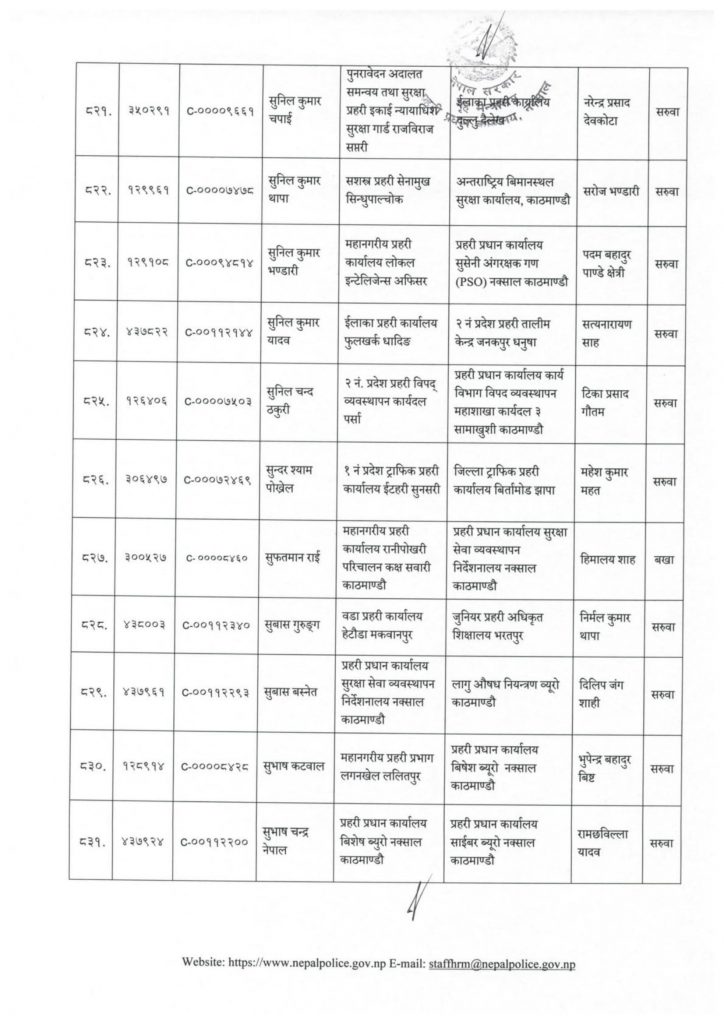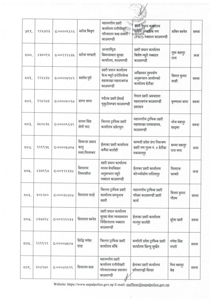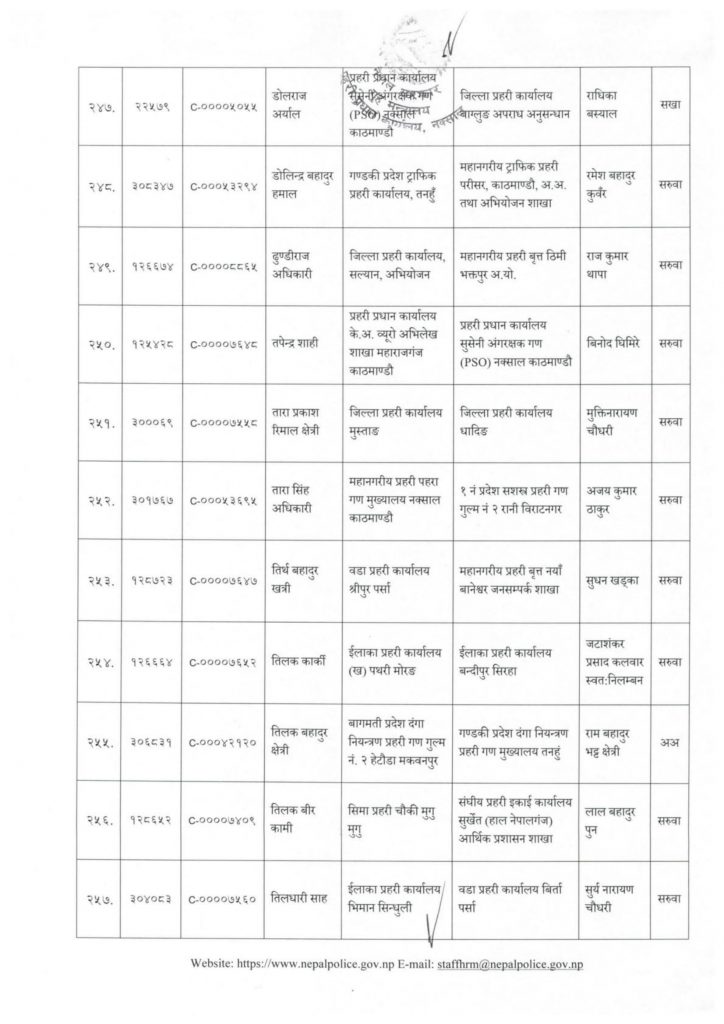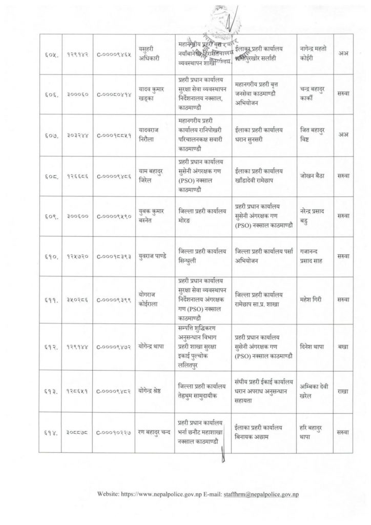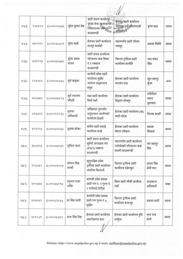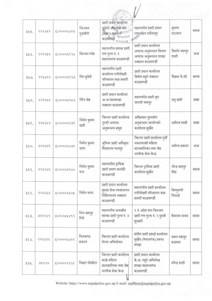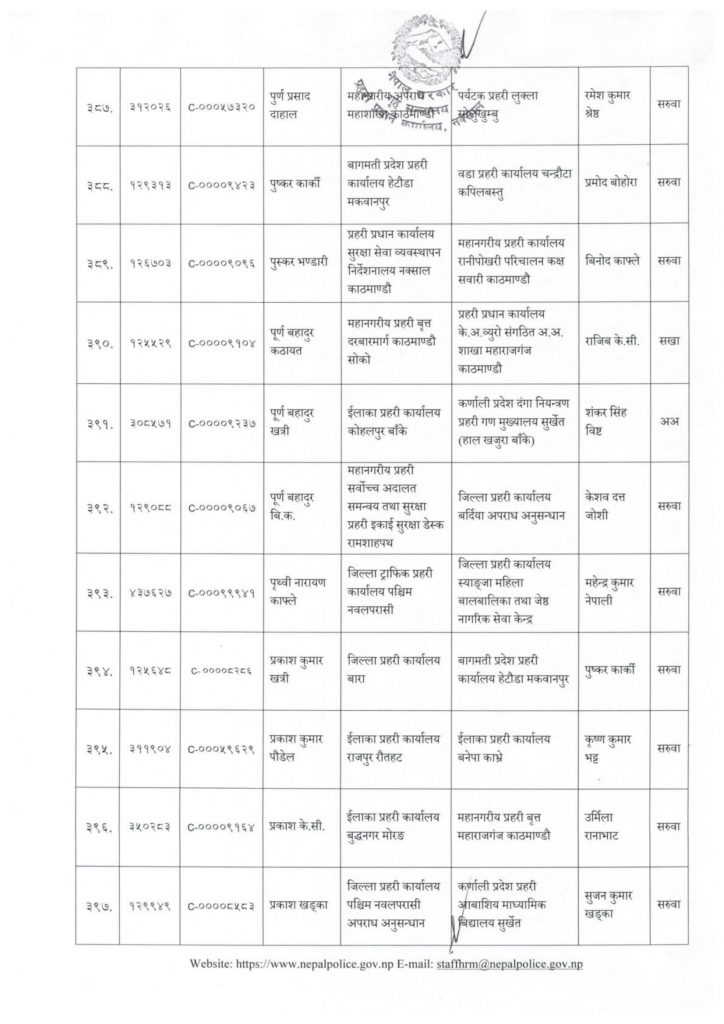 काठमाडौं । नेपाल प्रहरीका नायव निरीक्षक (सई)को ठूलो संख्यामा सरुवा भएको छ ।