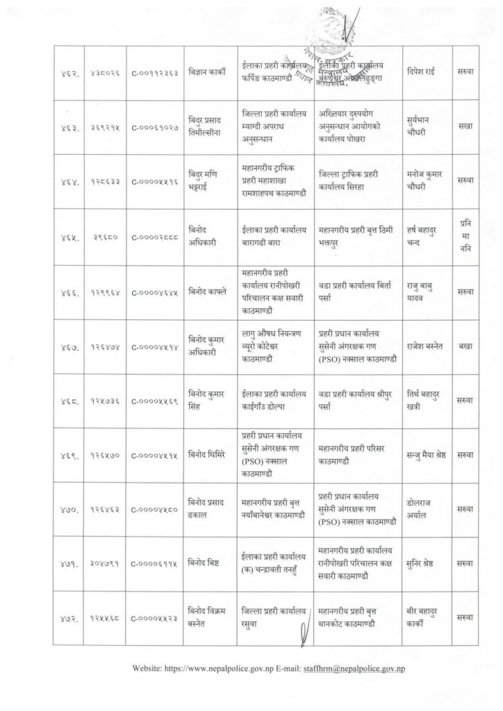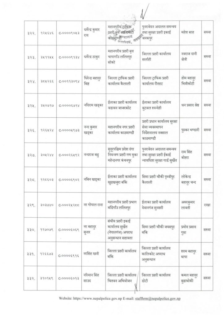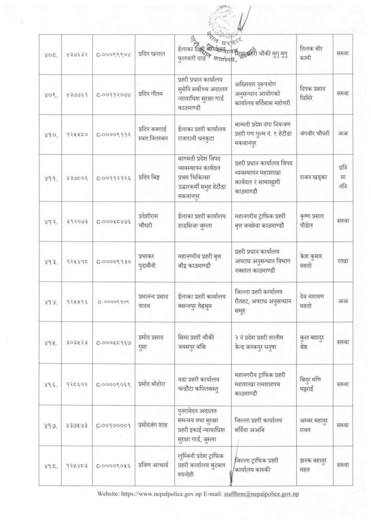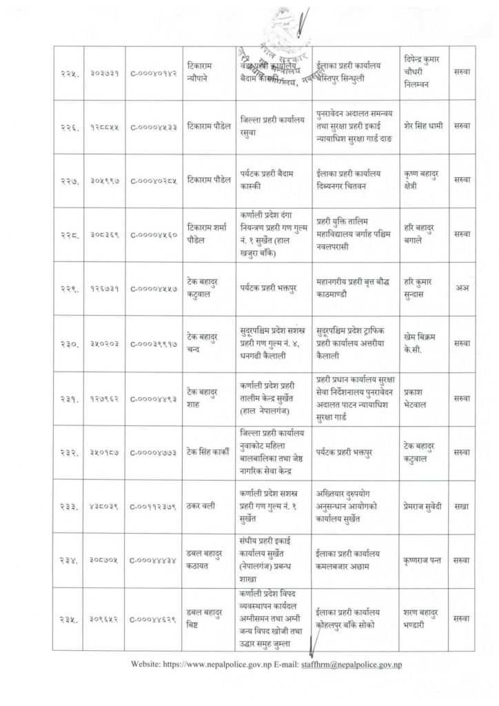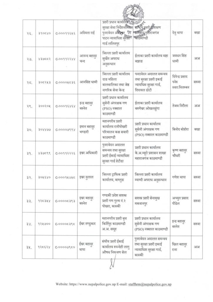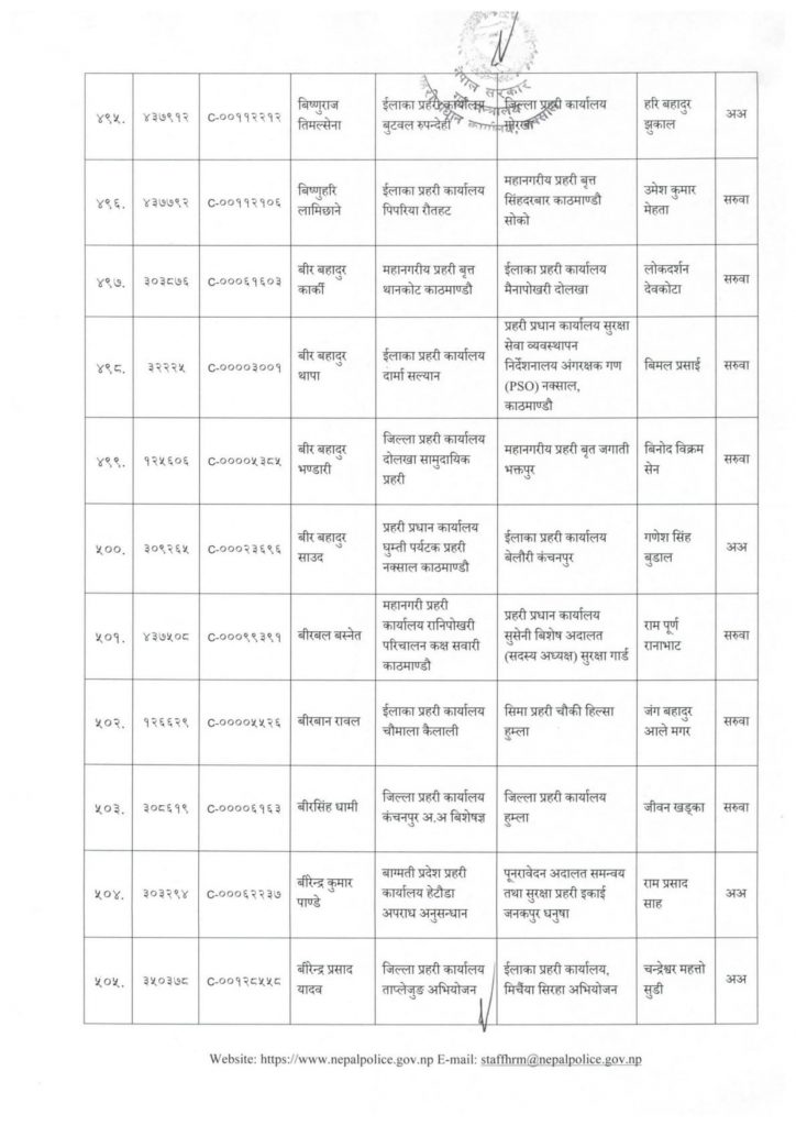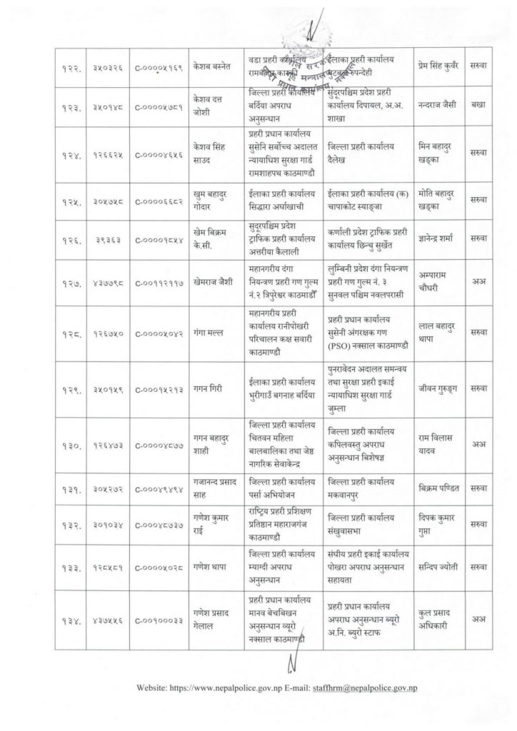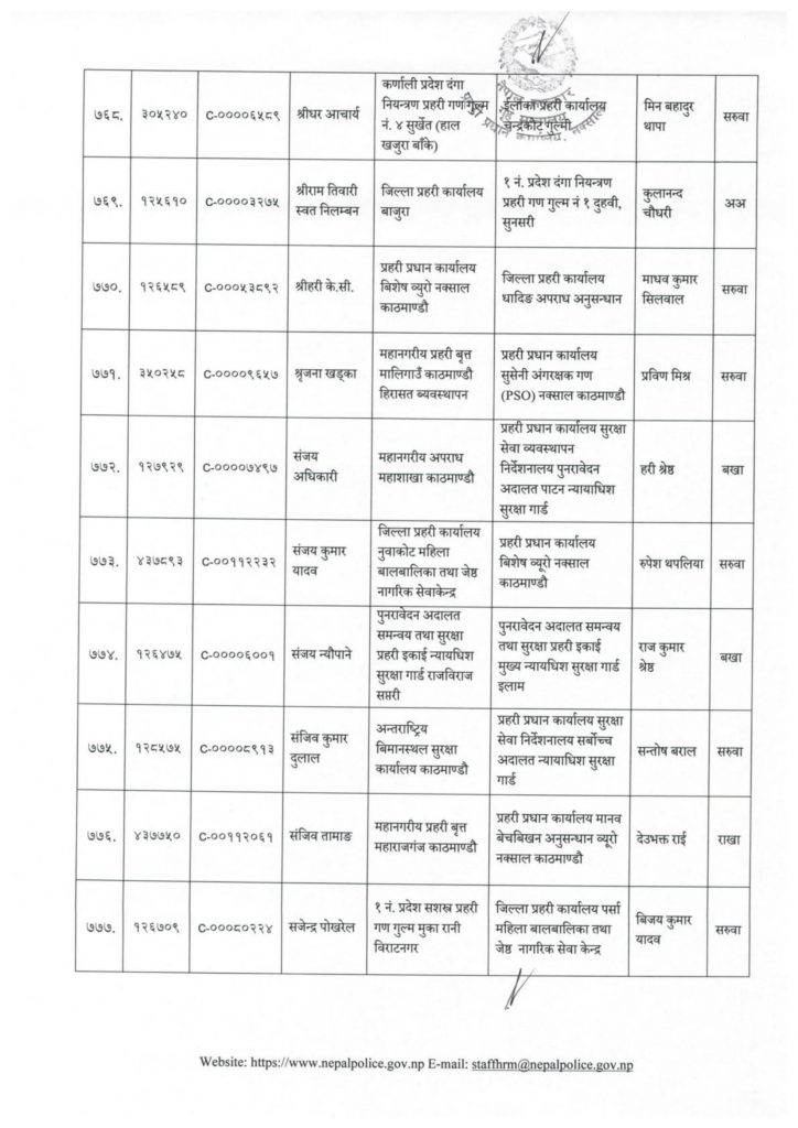 काठमाडौं । नेपाल प्रहरीका नायव निरीक्षक (सई)को ठूलो संख्यामा सरुवा भएको छ ।