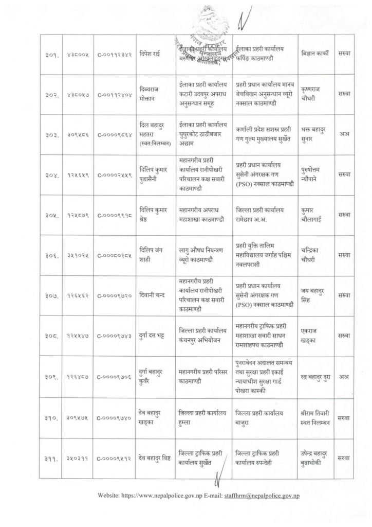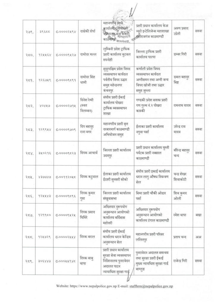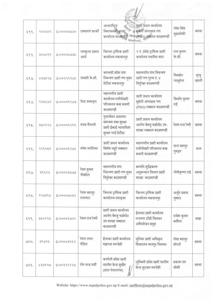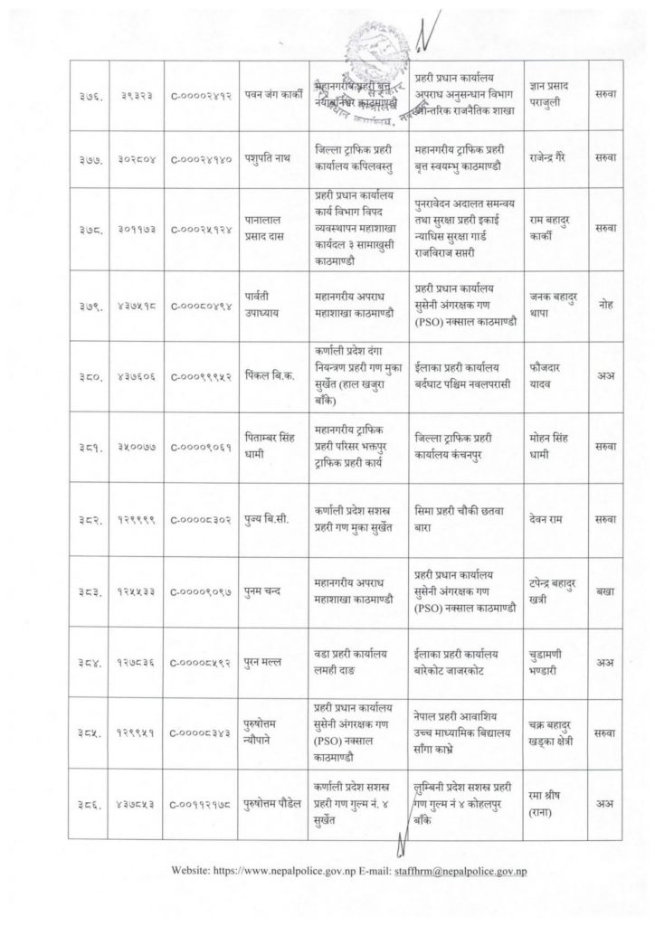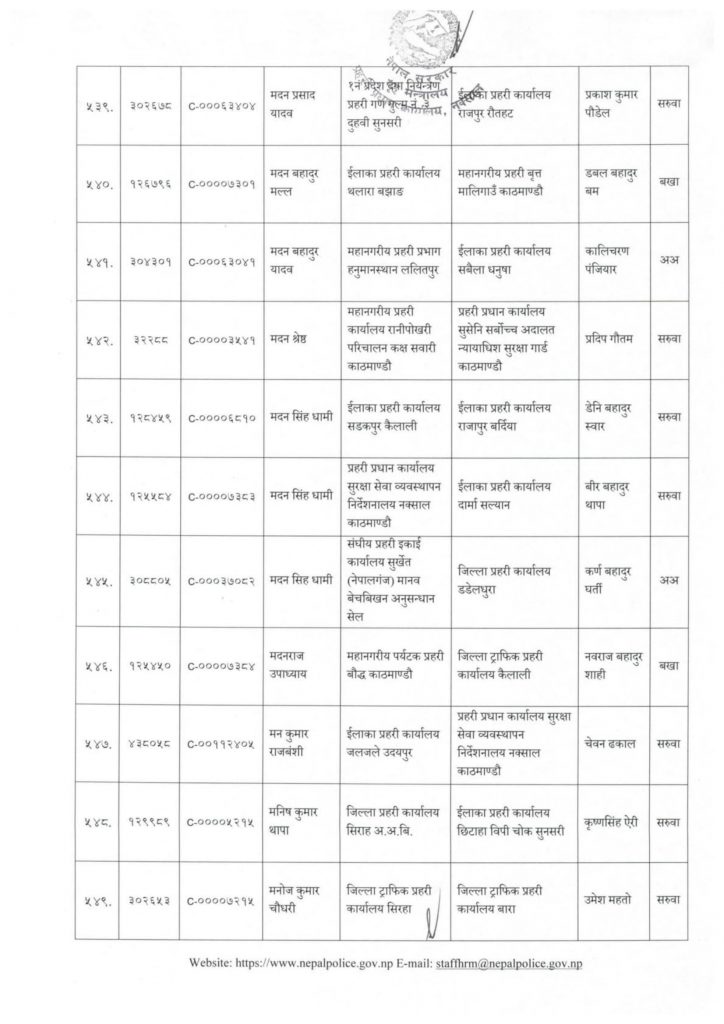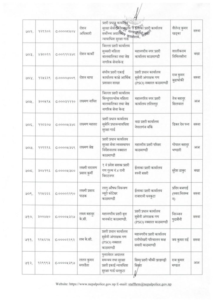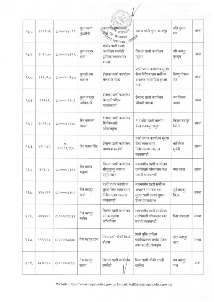 काठमाडौं । नेपाल प्रहरीका नायव निरीक्षक (सई)को ठूलो संख्यामा सरुवा भएको छ ।