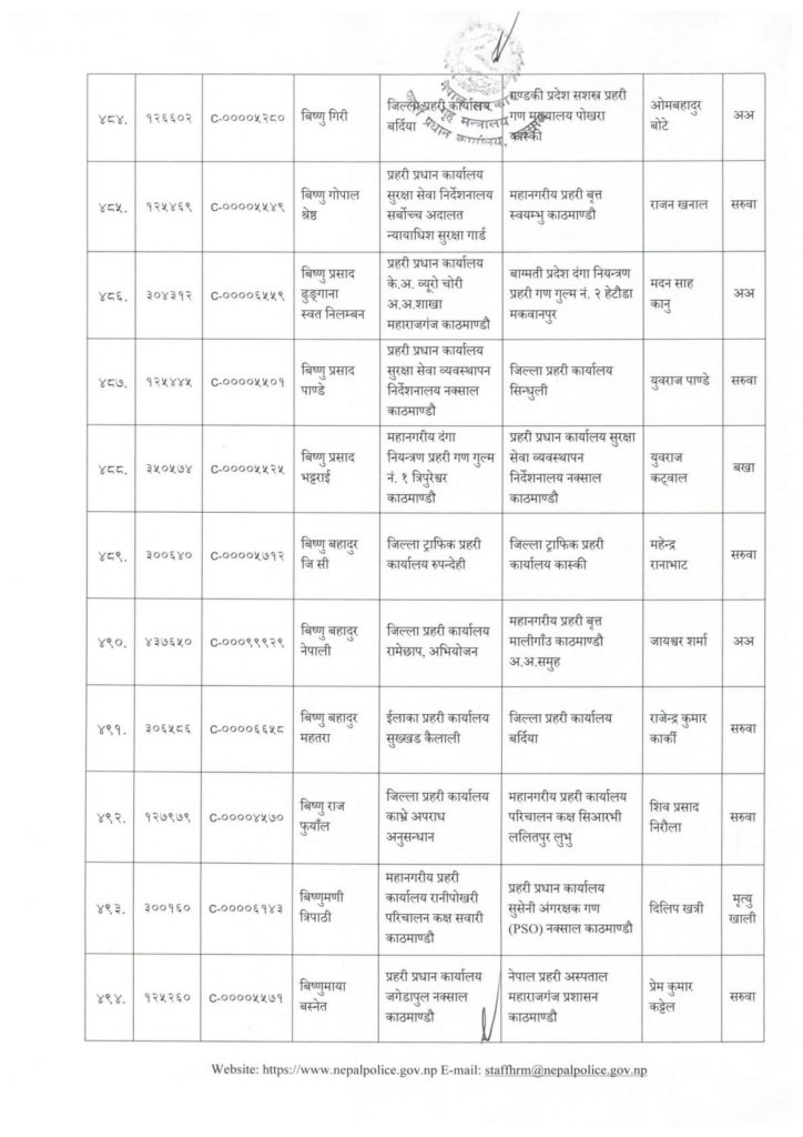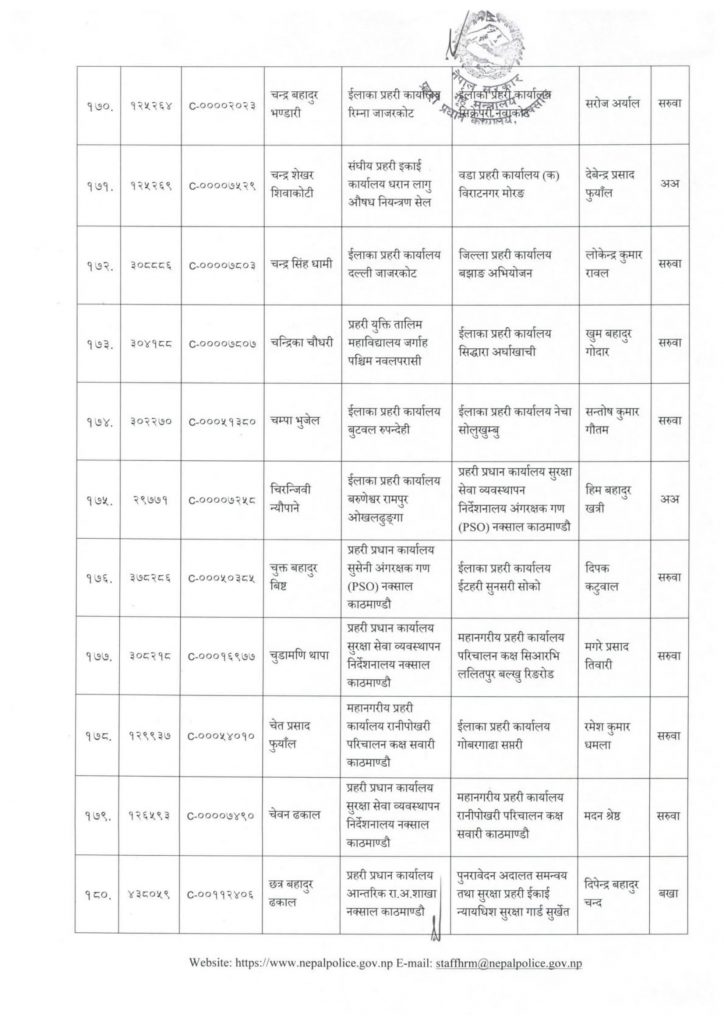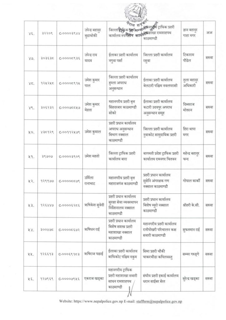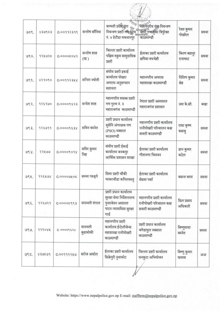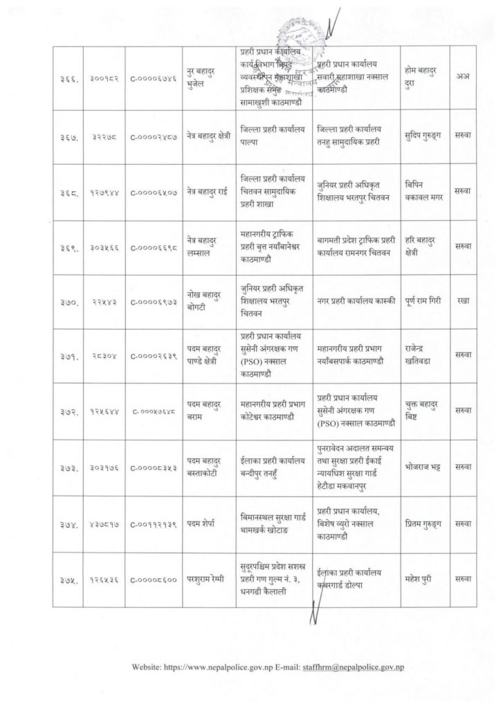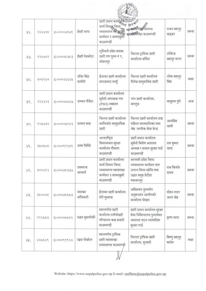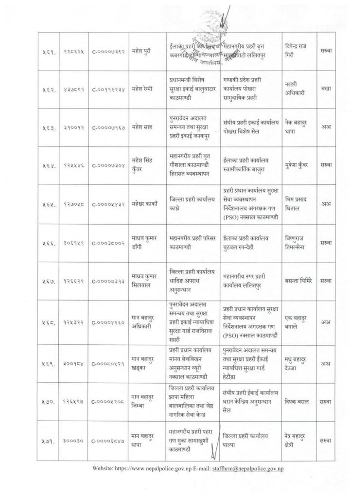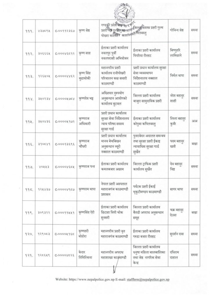 काठमाडौं । नेपाल प्रहरीका नायव निरीक्षक (सई)को ठूलो संख्यामा सरुवा भएको छ ।