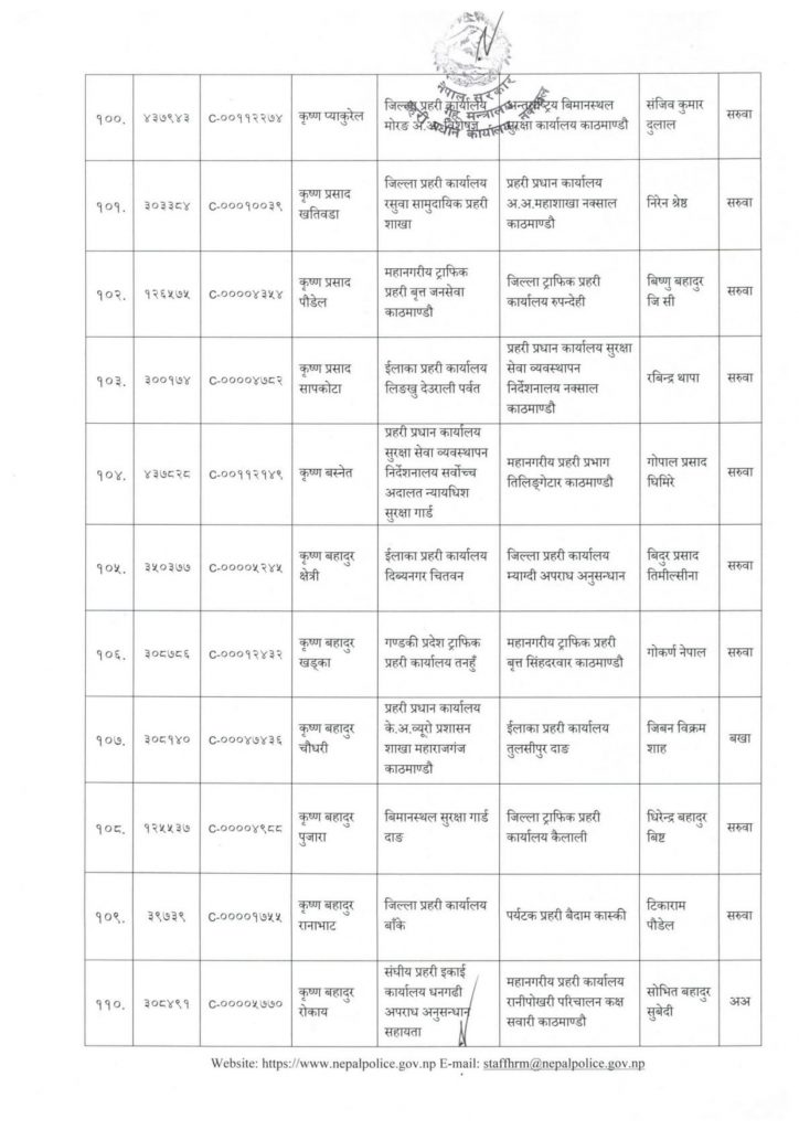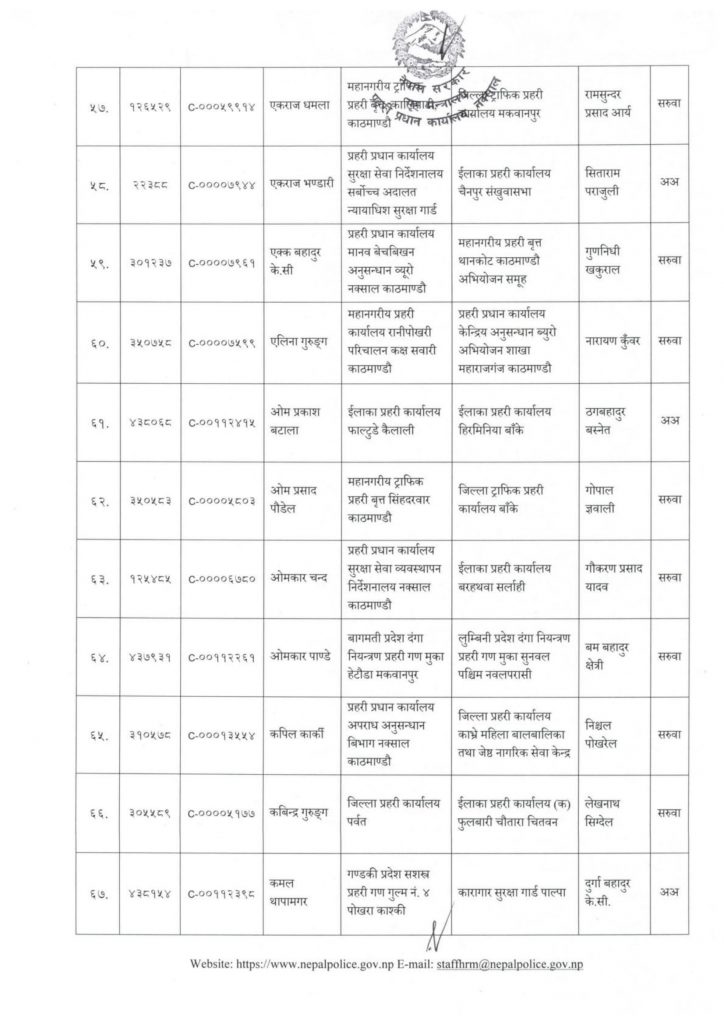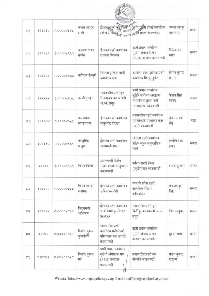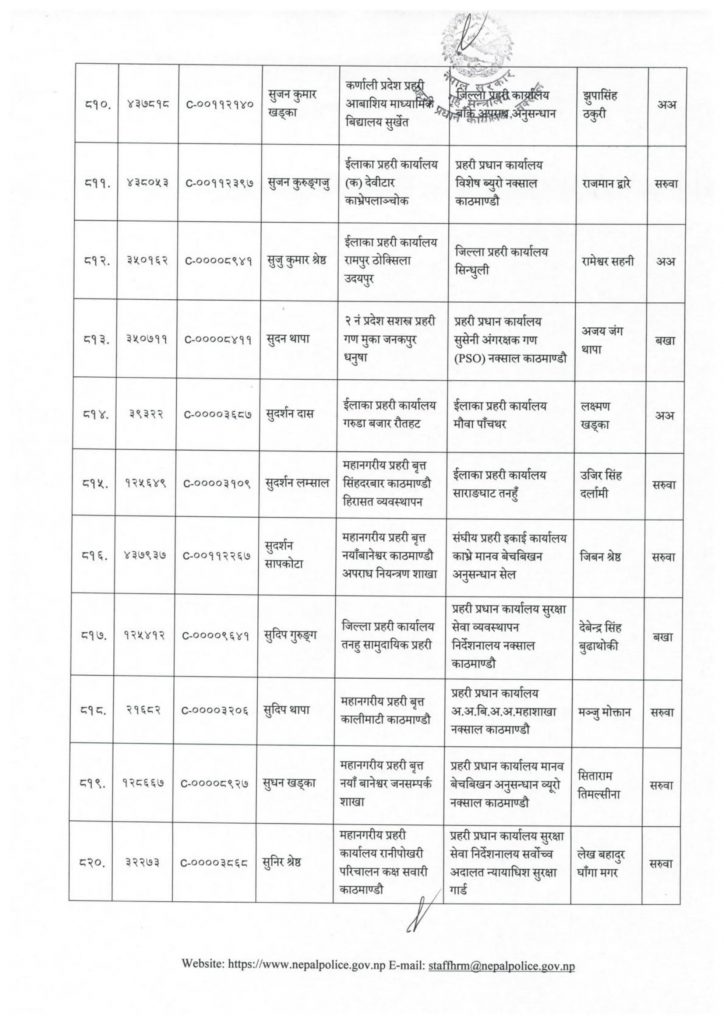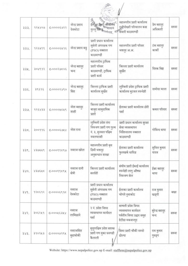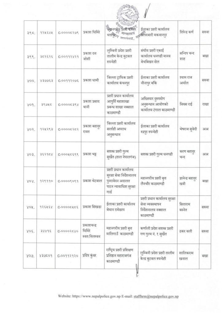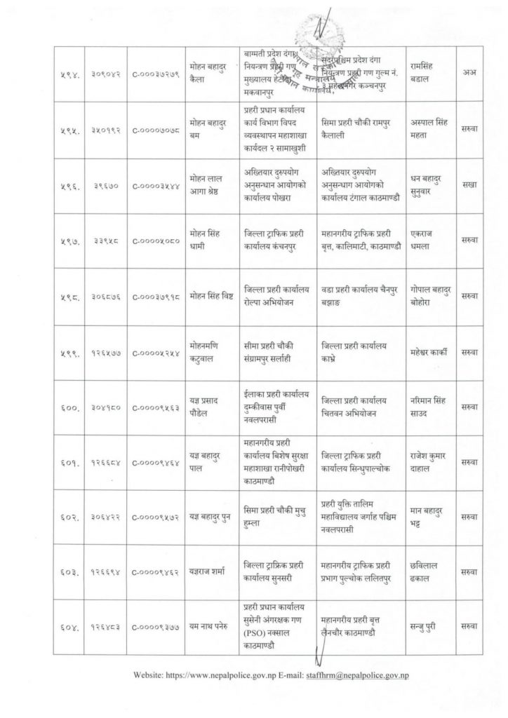काठमाडौं । नेपाल प्रहरीका नायव निरीक्षक (सई)को ठूलो संख्यामा सरुवा भएको छ ।