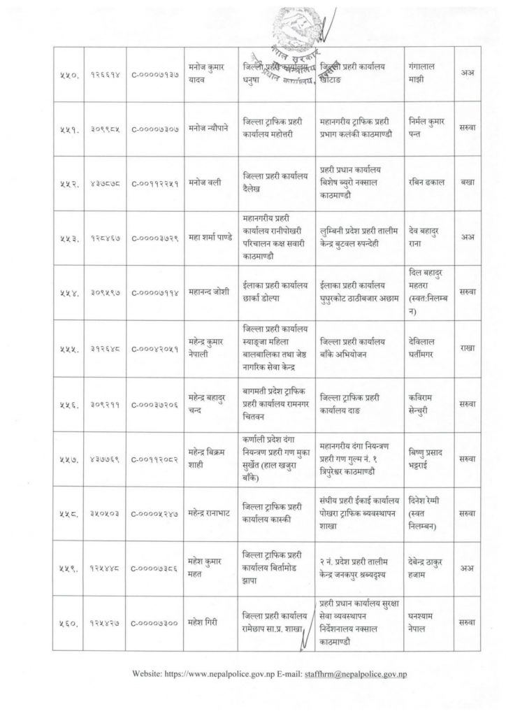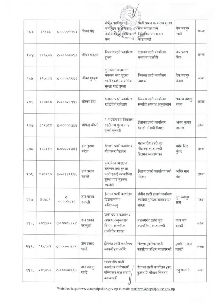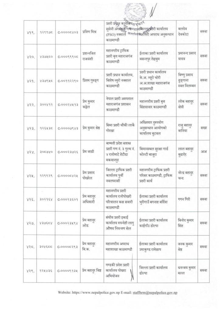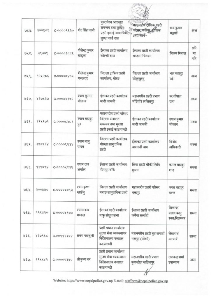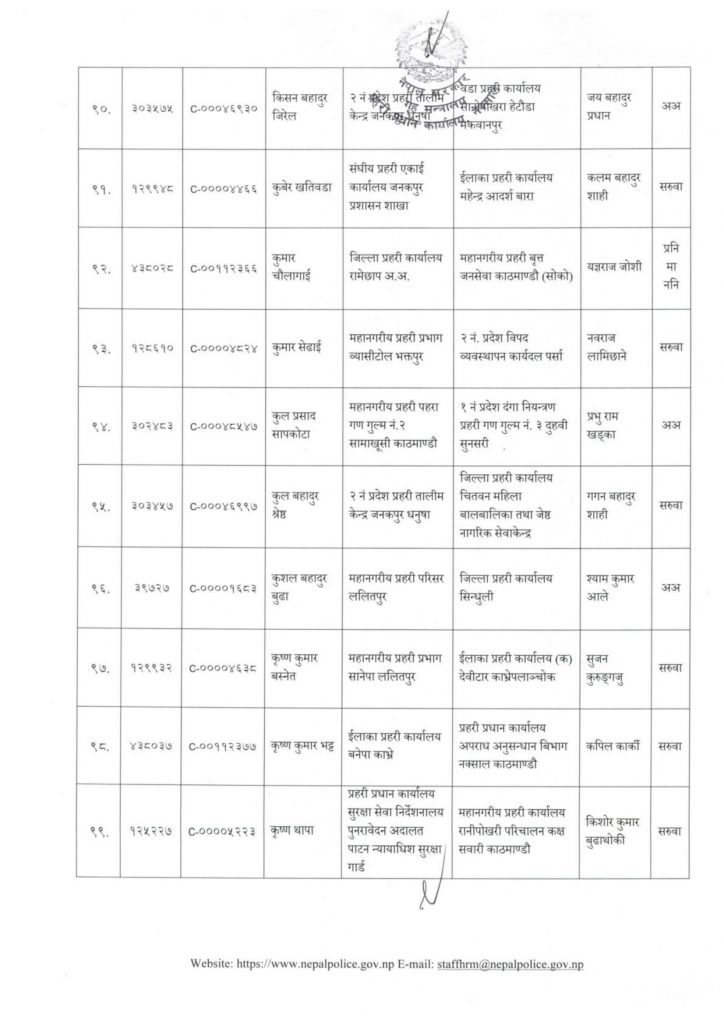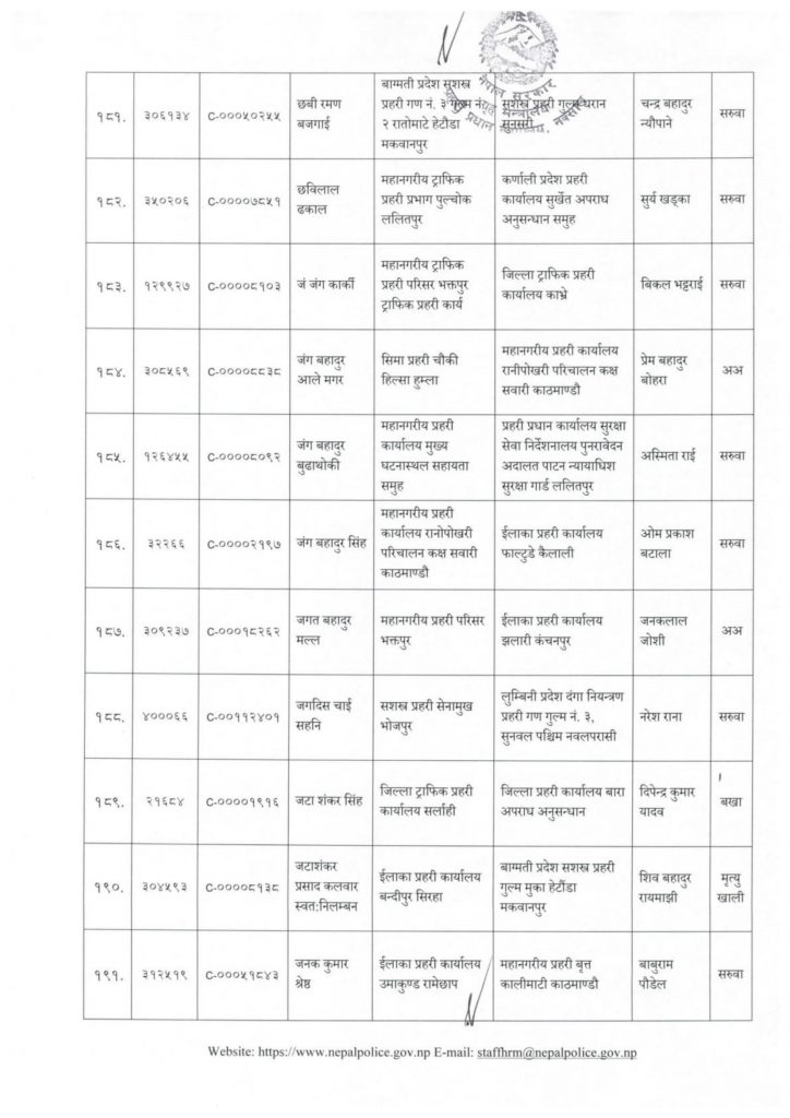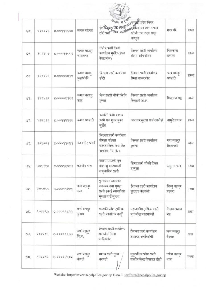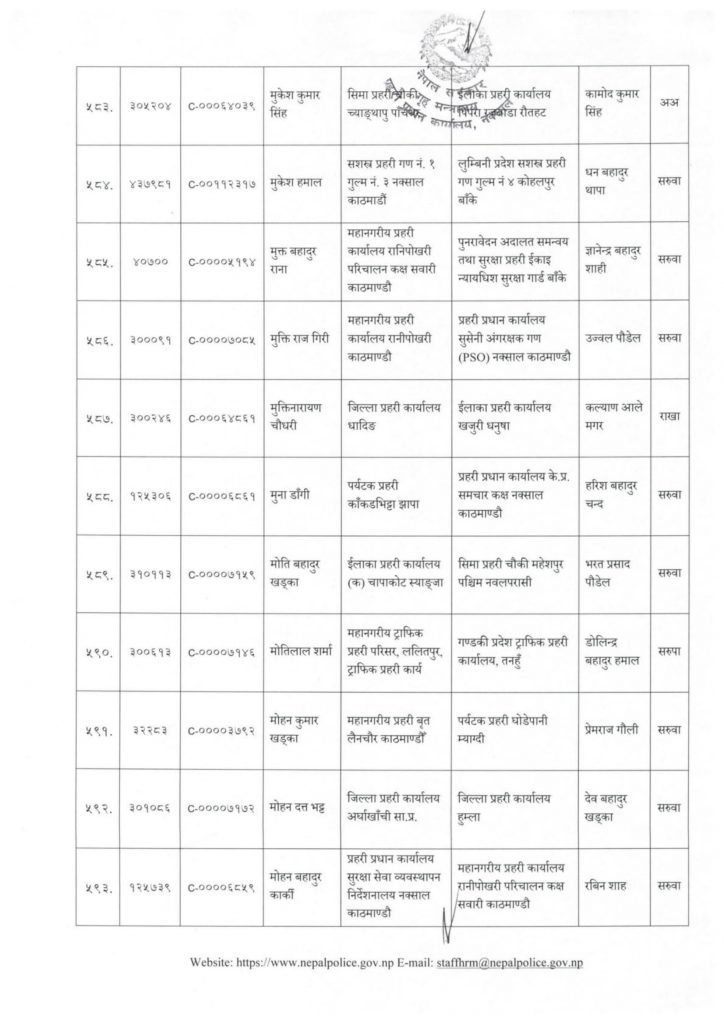 काठमाडौं । नेपाल प्रहरीका नायव निरीक्षक (सई)को ठूलो संख्यामा सरुवा भएको छ ।