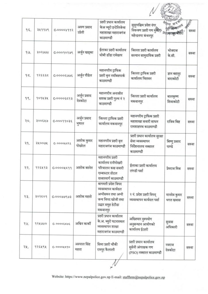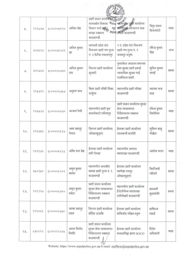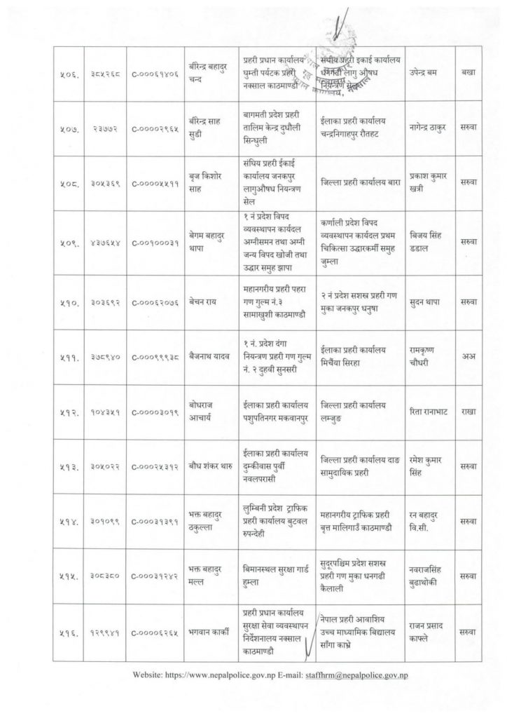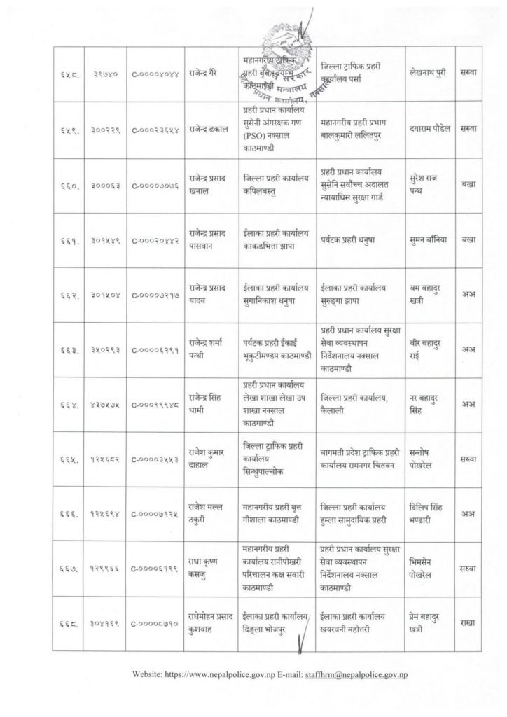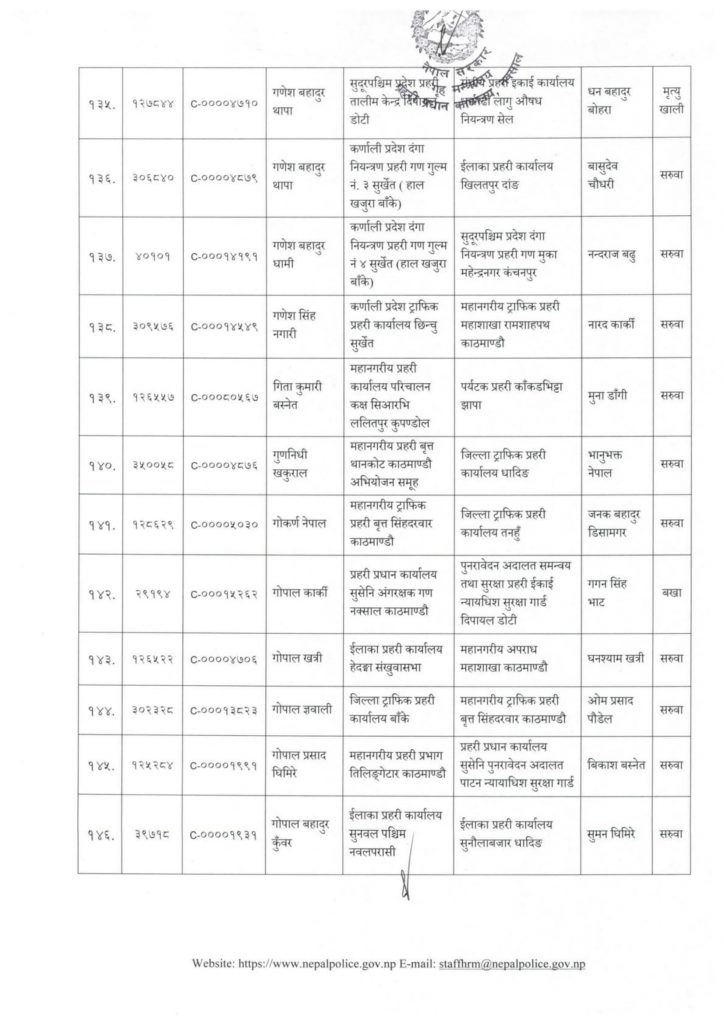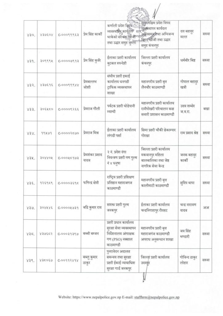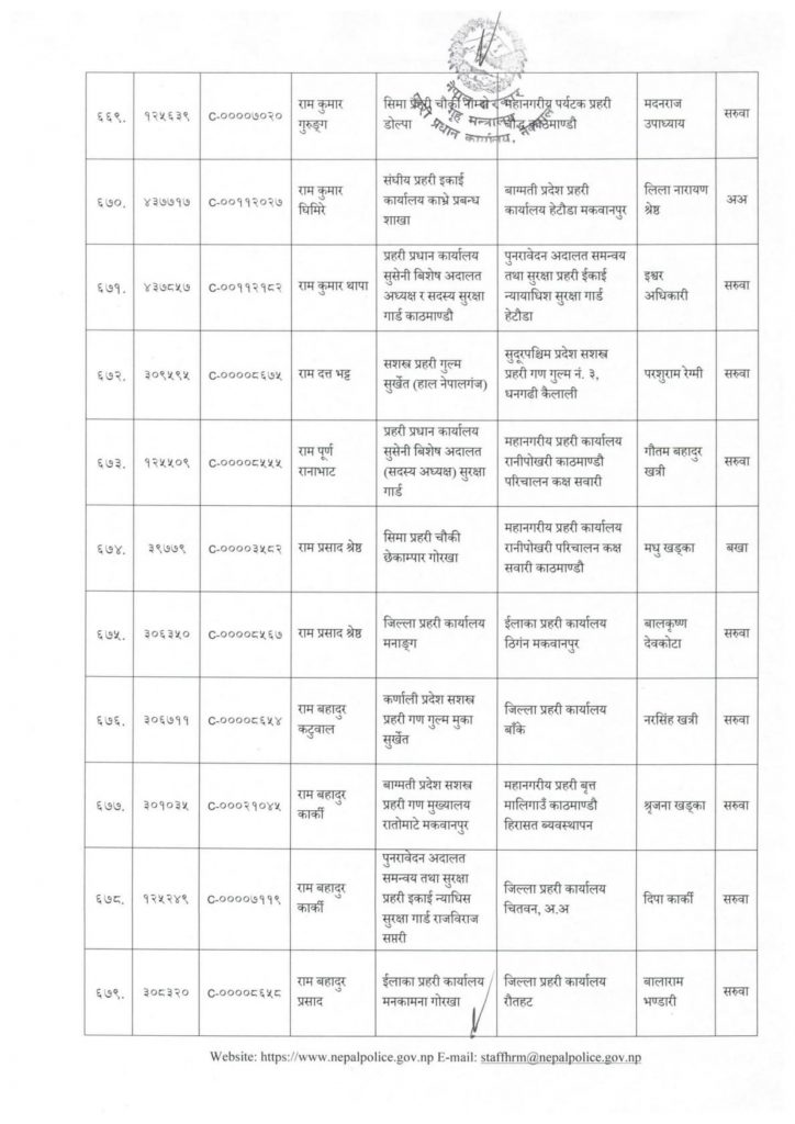 काठमाडौं । नेपाल प्रहरीका नायव निरीक्षक (सई)को ठूलो संख्यामा सरुवा भएको छ ।