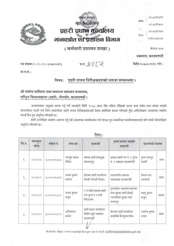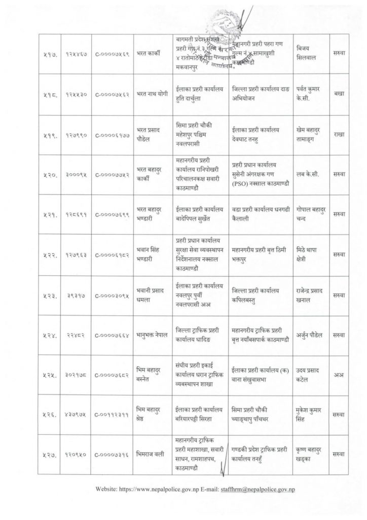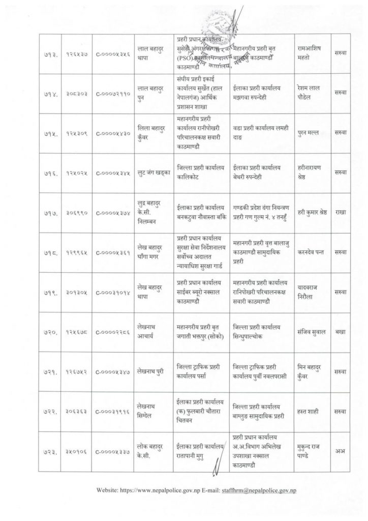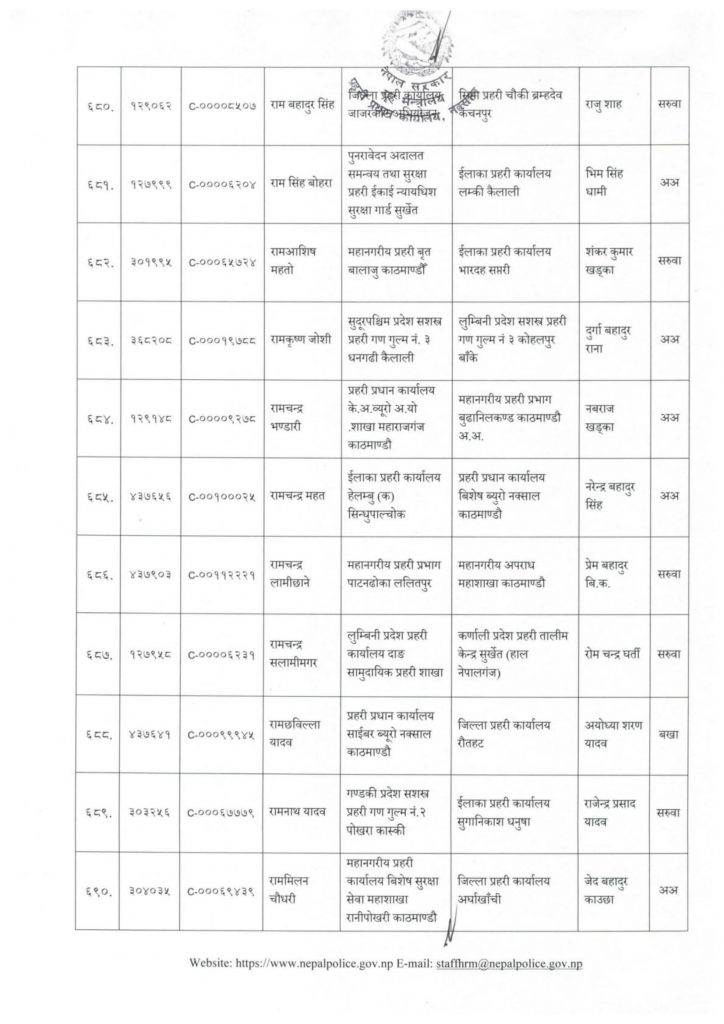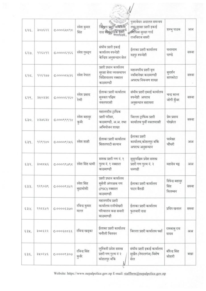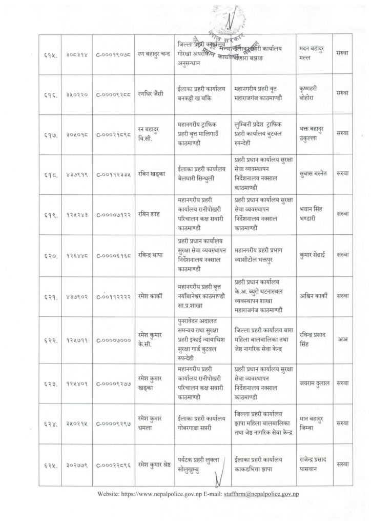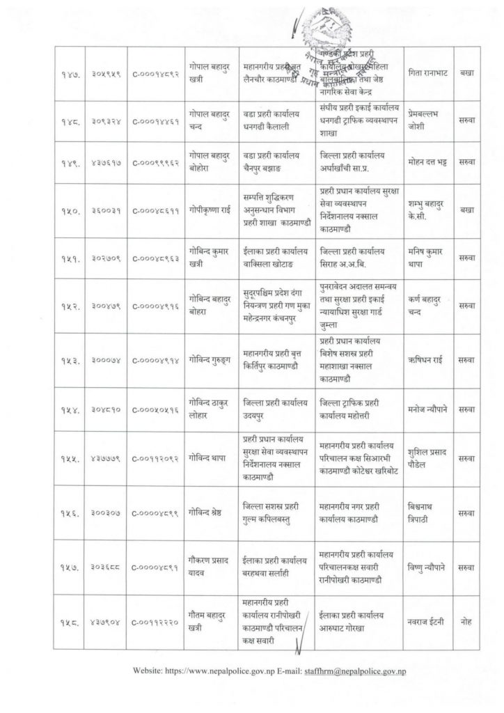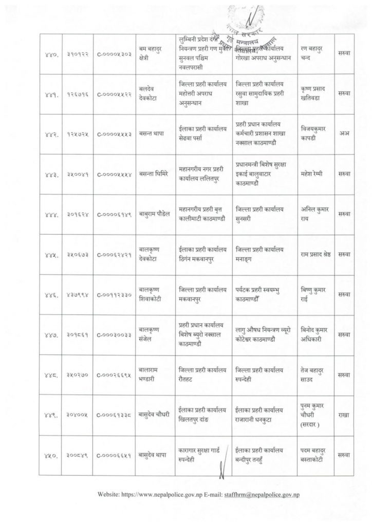काठमाडौं । नेपाल प्रहरीका नायव निरीक्षक (सई)को ठूलो संख्यामा सरुवा भएको छ ।