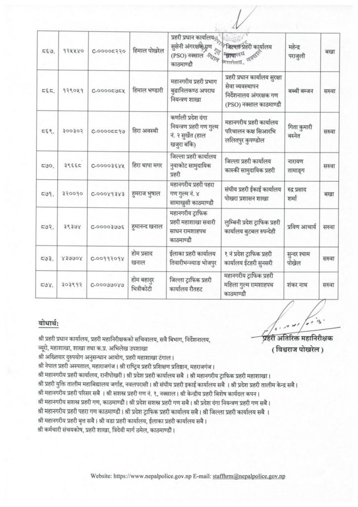 प्रहरी प्रधान कार्यालयले ८७४ जना सईहरूको सरुवा गरेको विज्ञप्तिमा उल्लेख छ । सरुवा भएका सईहरूले तलव, रासन पुस महिनादेखि सरुवा भएकै स्थानबाट खानुपर्नेछ ।