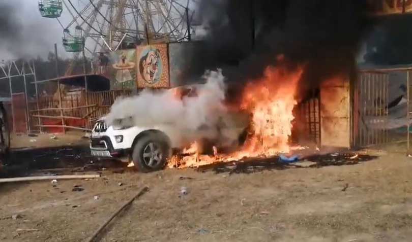 खेसरीलाल नपुगेपछि आक्रोशित भीडले स्टेज तोडफोड गर्दै चारवटा स्करपिओमा आगजनी गरेको प्रहरीले जनाएको छ ।
