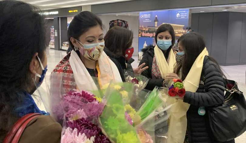 हिमानी ट्रष्ट युएसएका पदाधिकारीले पूर्वयुवराज्ञी हिमानीलाई विमानस्थलमा स्वागत गरेका छन् ।