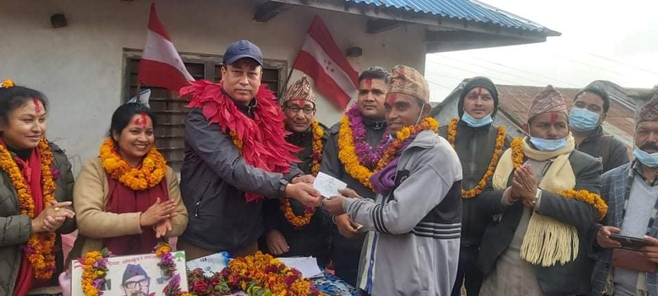 कार्यक्रममा सचिव लम्साल र सभापति श्रेष्ठले ईकाइ सभापतिहरूलाई नेपाली कांग्रेसको बिधान र मास्क पनि बितरण गरिएको थियो ।