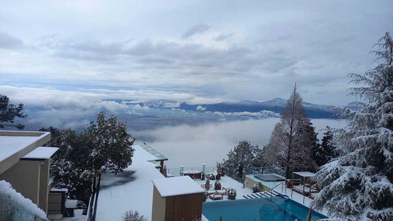 लाखुरी भञ्ज्याङमा होटल माऊण्ट मोनाष्ट्रि टेरेस रिसोर्ट पनि छ । सो रिसोर्टमा पनि हिउँले ढपक्कै ढाकेको छ । रिसोर्टबाट काठमाडौं उपत्यकाको दृष्य निकै सुन्दर मनमोहक देखिएको थियो ।