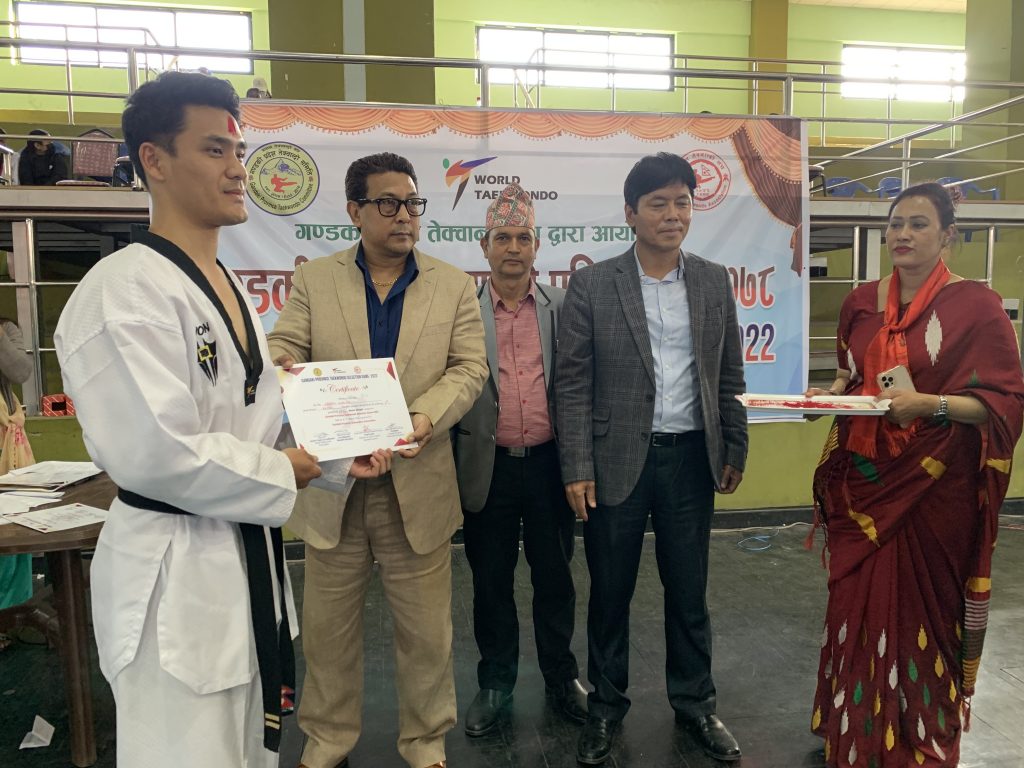 विजयी खेलाडीलाई गण्डकी प्रदेशका युवा तथा खेलकुदमन्त्री राजीव गुरुङ उर्फ दीपक मनाङेले ट्रफी वितरण गरेका थिए । कार्यक्रममा नेपाल तेक्वान्दो संघका केन्द्रीय सदस्य राम गिरीको पनि उपस्थिति रहेको थियो ।