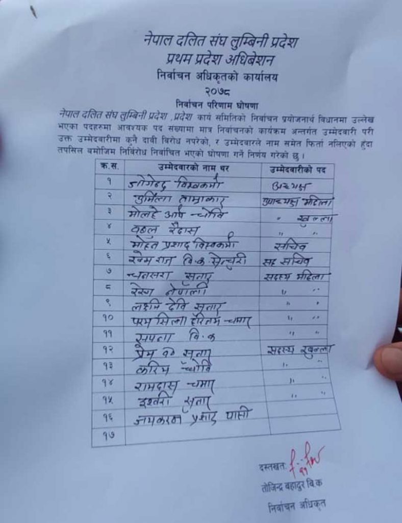 लुम्बिनी कांग्रेसको दलित संघमा संस्थापनको टिम विजयी, शेखर समूहले तोरीको फूल देख्यो