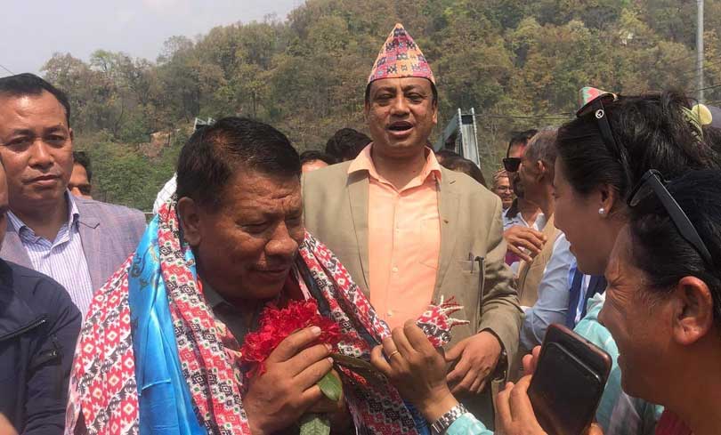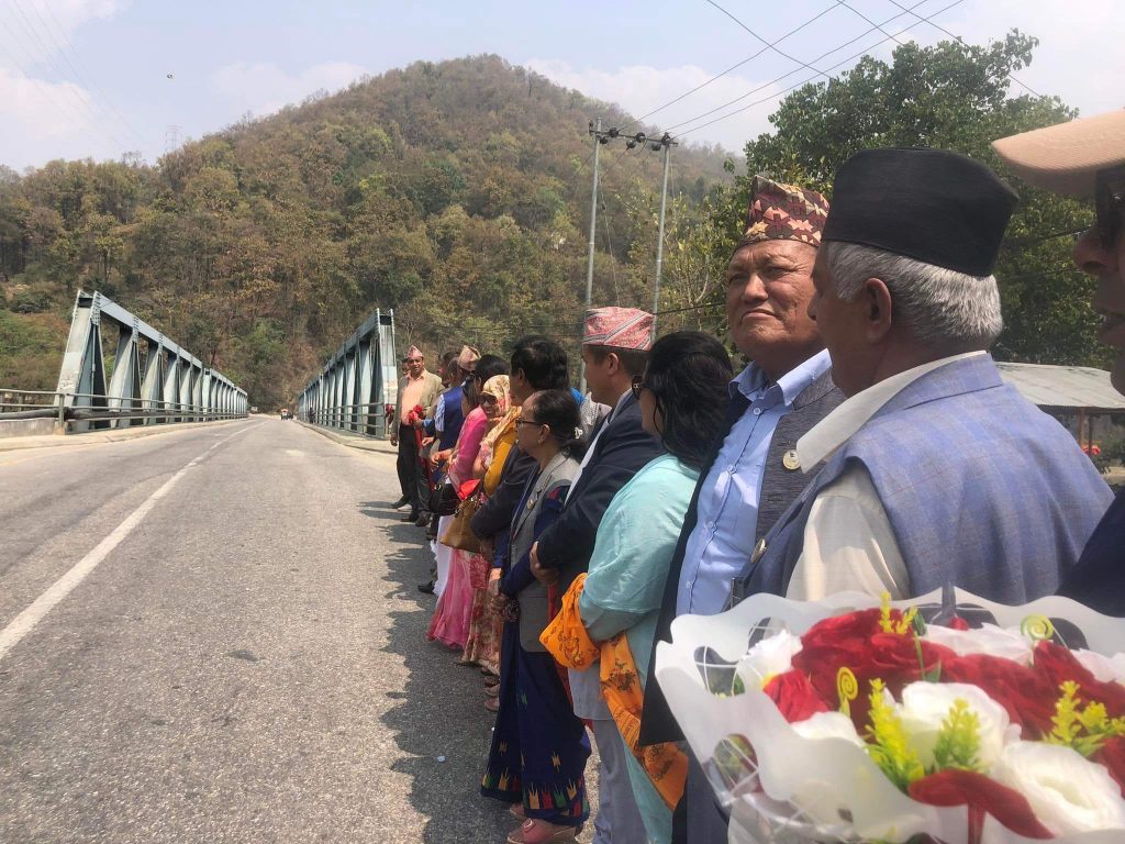 हेटौँडा प्रवेश गर्ने मुख्य सडकको पुलमा नेता सिंहलाई स्वागत गर्न सभापति बानियाँ आफै पुगेका थिए ।